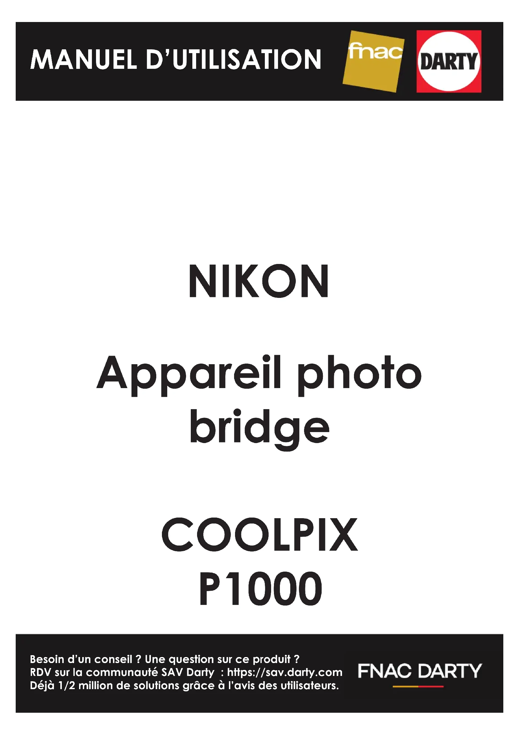 Besoin d’un conseil ? Une question sur ce produit ? RDV sur la communauté SAV Darty : https://sav.darty.com Déjà 1/2 million de solutions grâce à l’avis des utilisateurs. NIKON Appareil photo bridge COOLPIX P1000