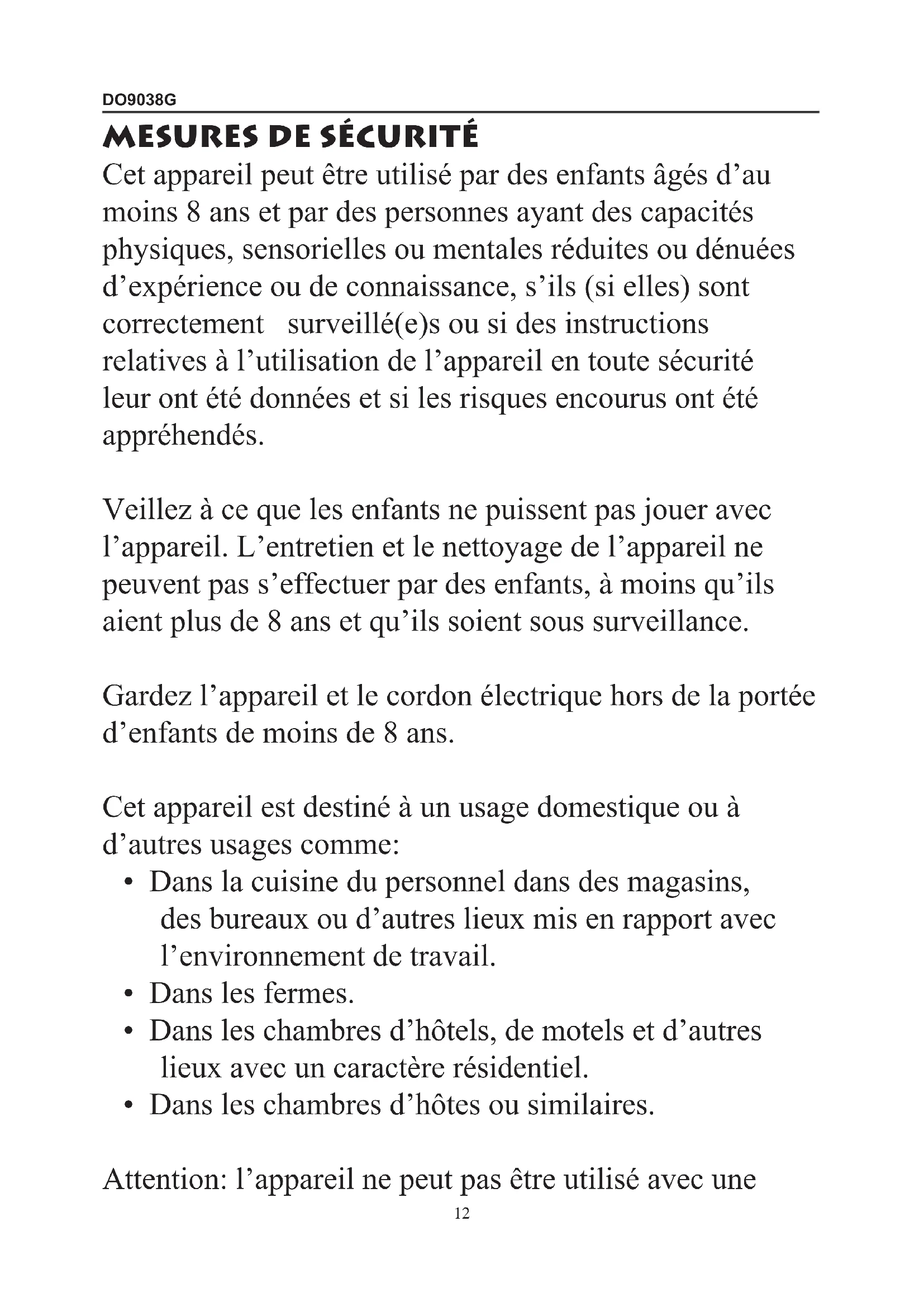 Retrouvez gratuitement la notice de l'appareil DO9038G DOMO au format PDF.