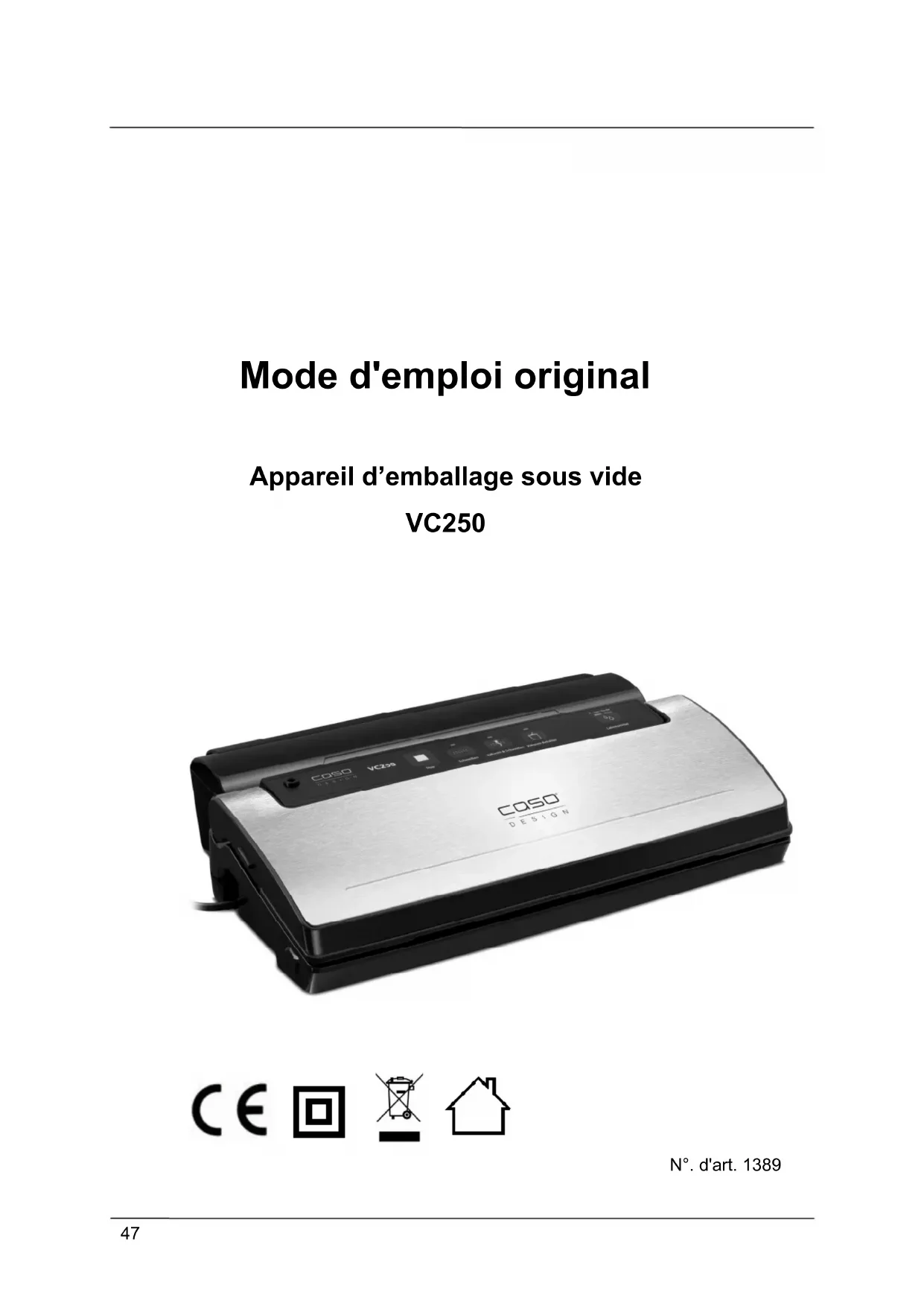 Retrouvez gratuitement la notice de l'appareil VC250 CASO au format PDF.