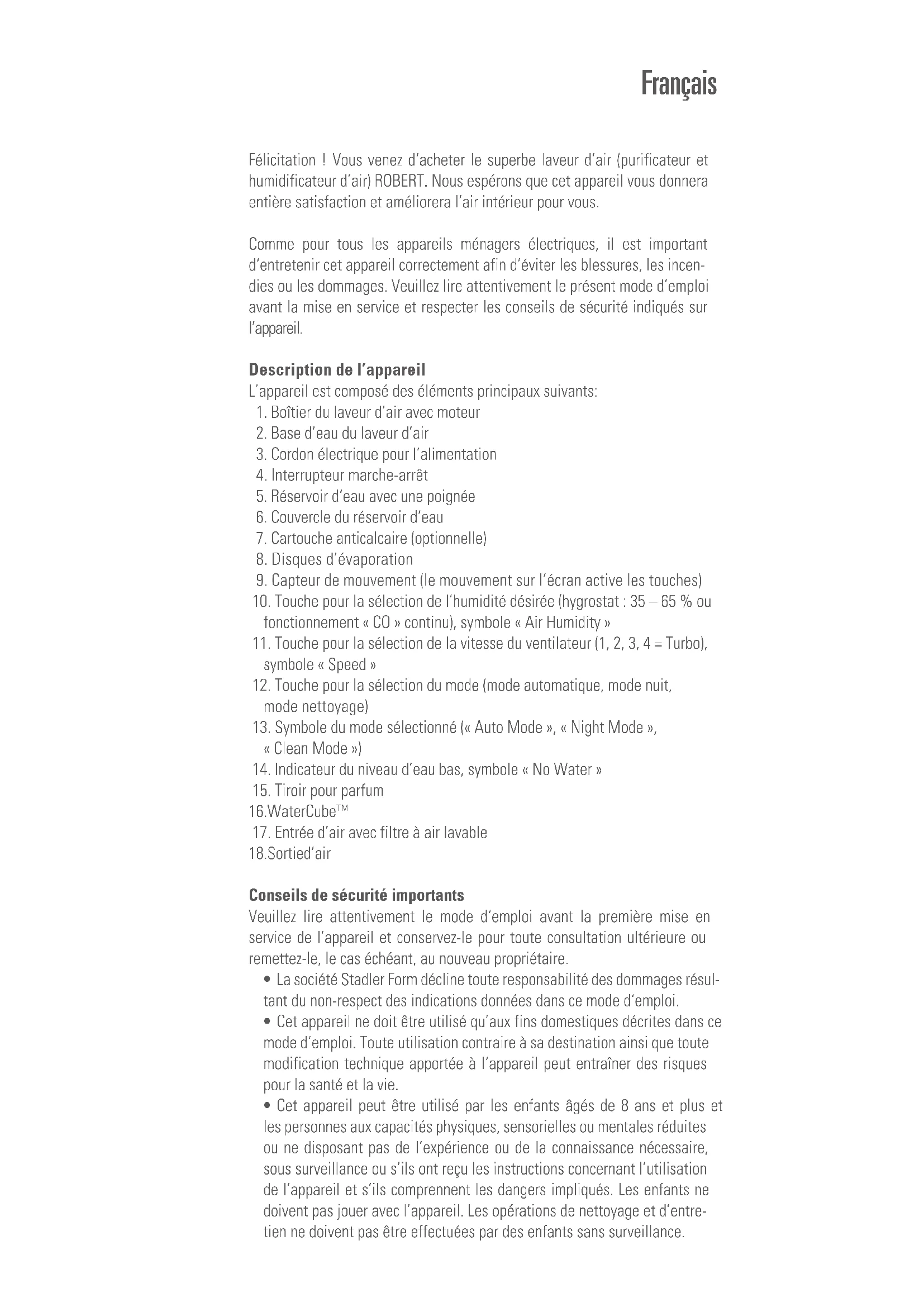 Robert - Humidificateur STADLER FORM - Notice d'utilisation et mode d'emploi gratuit
