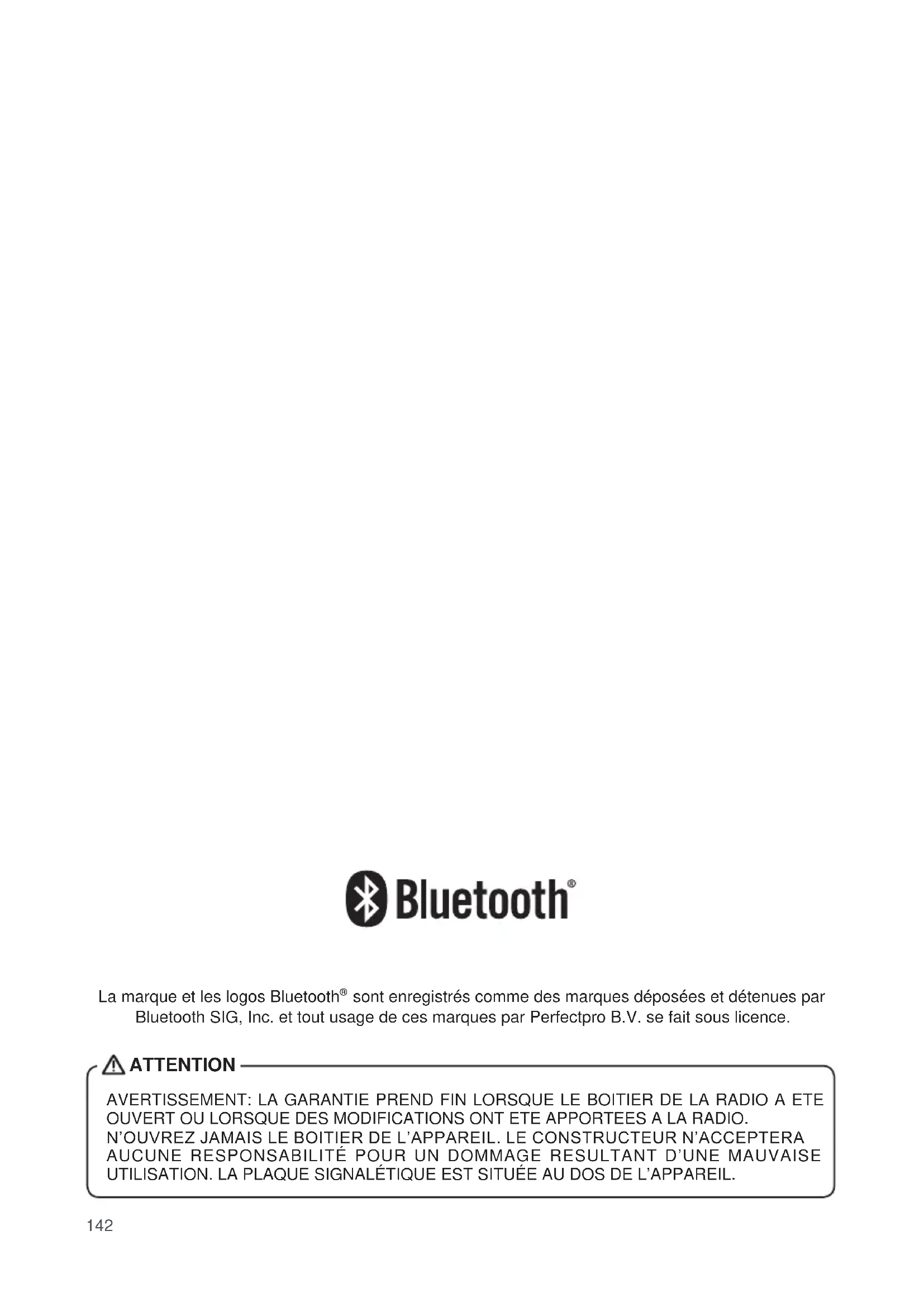 AVERTISSEMENT: LA GARANTIE PREND FIN LORSQUE LE BOITIER DE LA RADIO A ETE