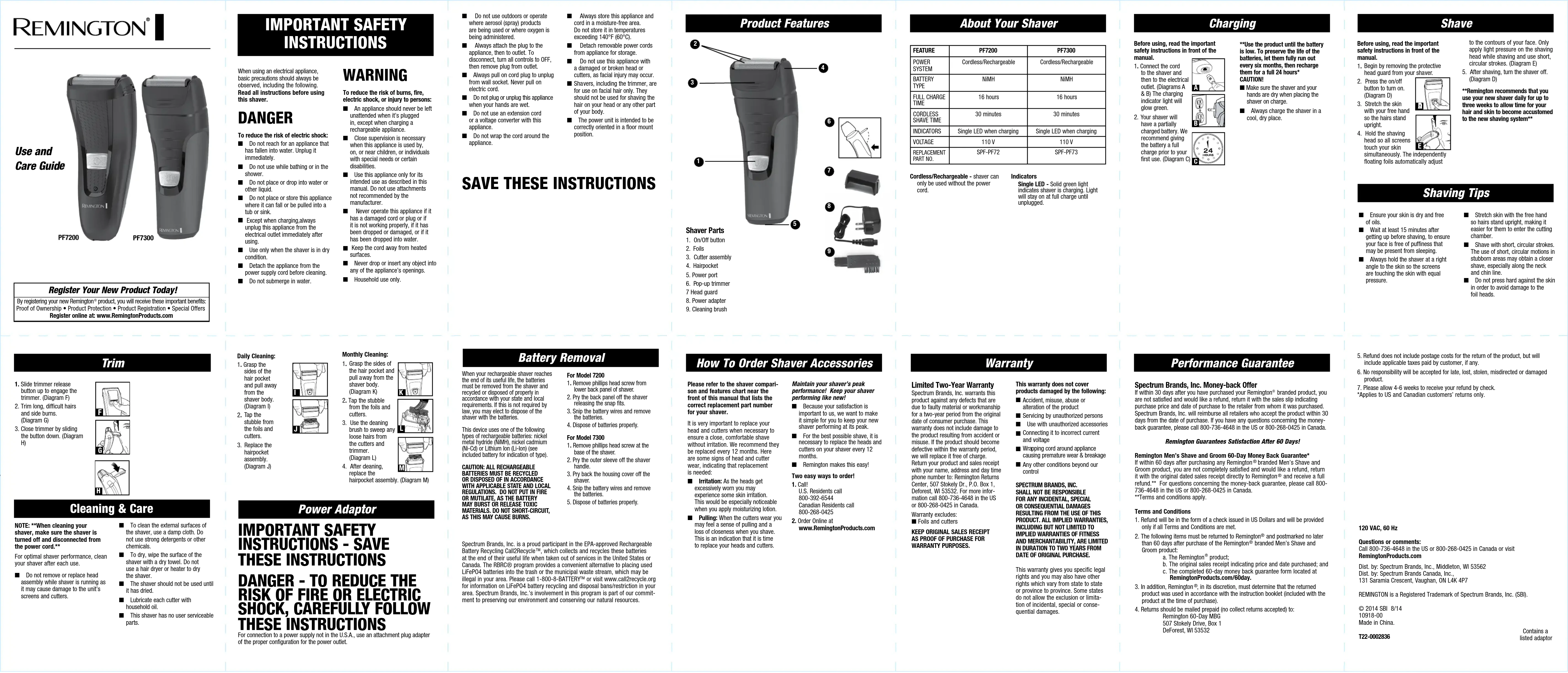 PF7300A - Rasoir REMINGTON - Notice d'utilisation et mode d'emploi gratuit