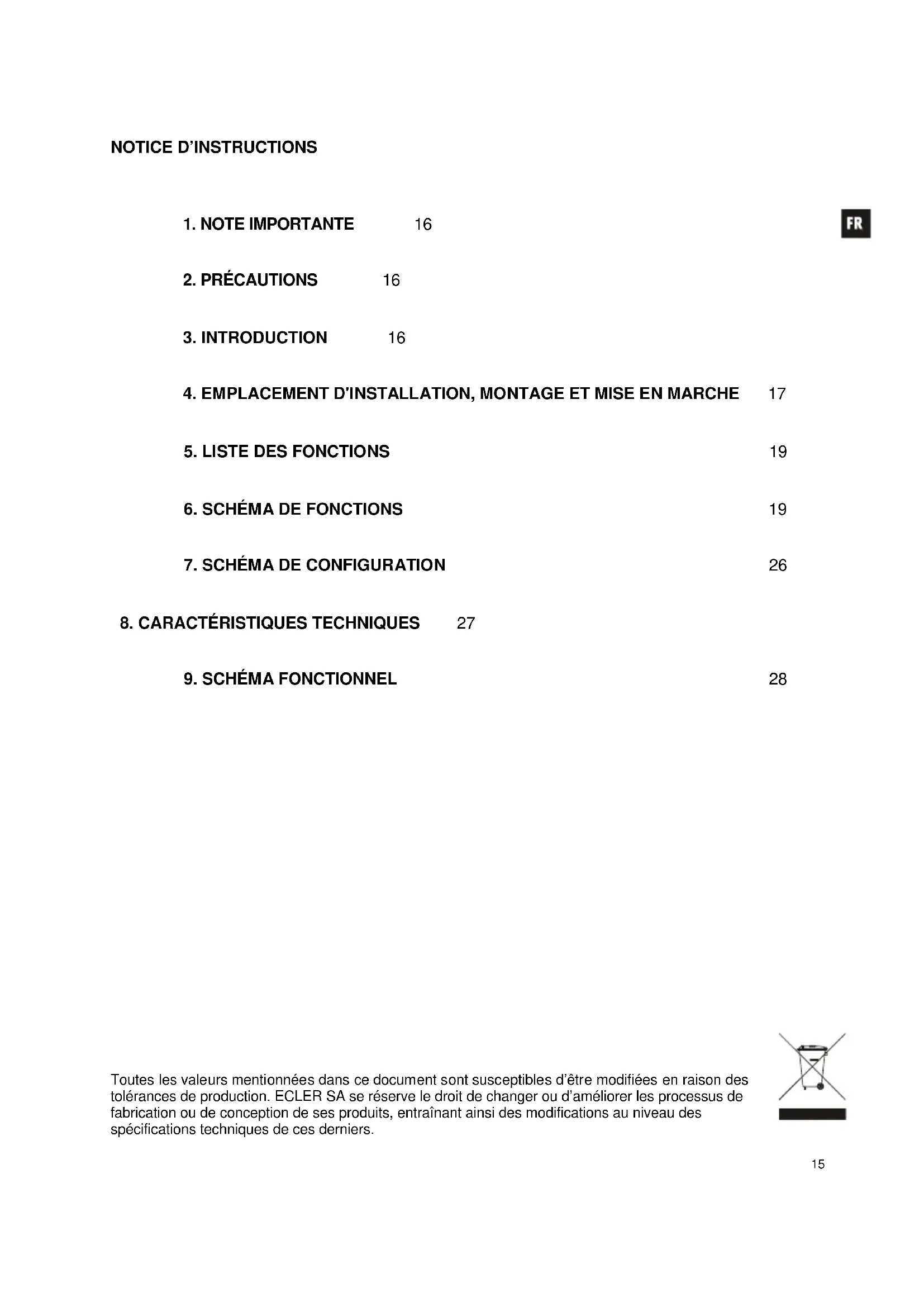 Toutes les valeurs mentionnées dans ce document sont susceptibles d'être modifiées en raison des tolérances de production. ECLER SA se réserve le droit de changer ou d'améliorer les processus de fabrication ou de conception de ses produits, entraînant ainsi des modifications au niveau des spécifications techniques de ces derniers.