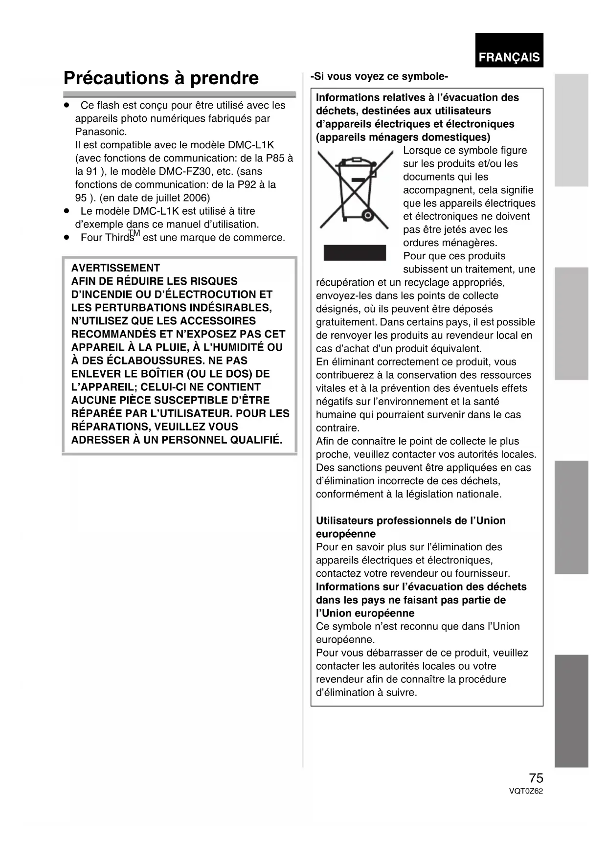 MODE D'EMPLOI Lumix DMWFL500 PANASONIC