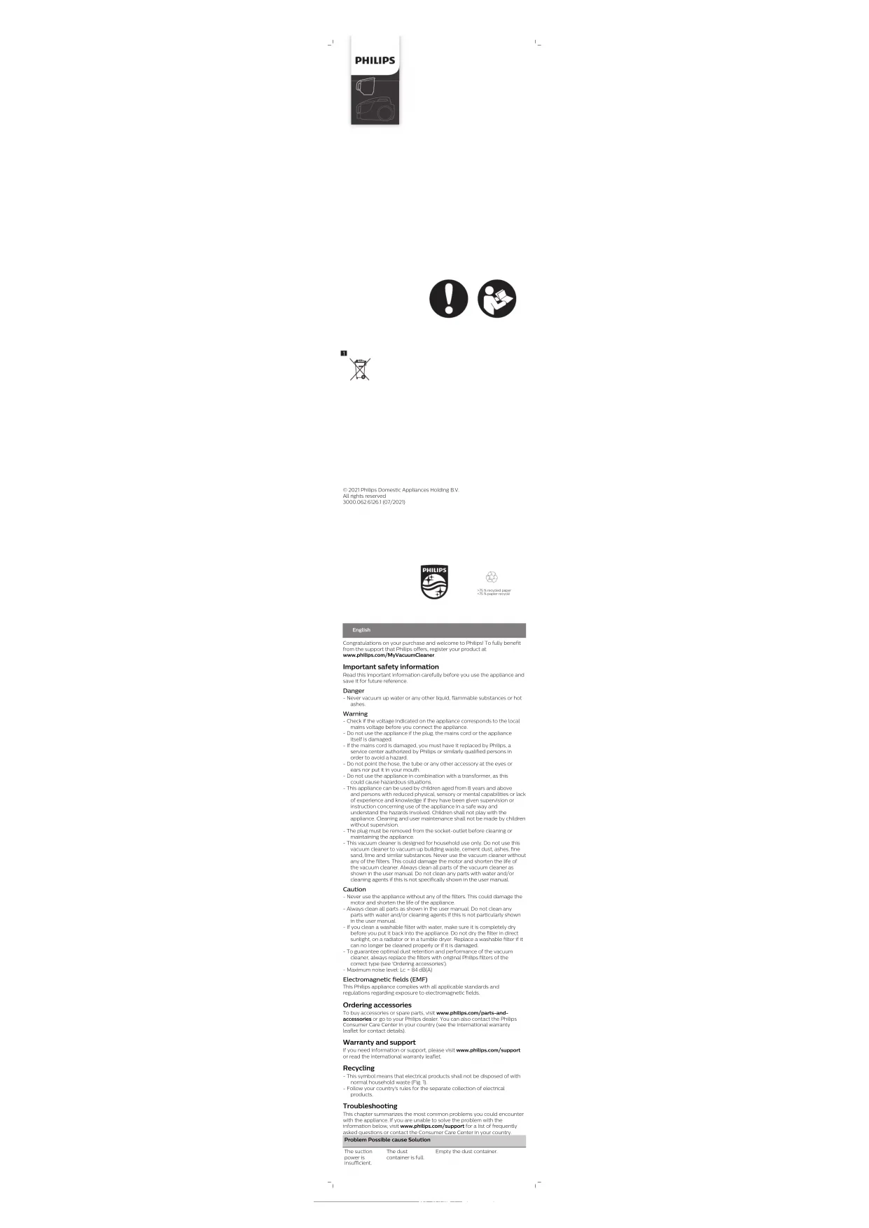Téléchargez la notice de votre Aspirateur au format PDF gratuitement ! Retrouvez votre notice PowerPro Active FC9553 - PHILIPS et reprennez votre appareil électronique en main. Sur cette page sont publiés tous les documents nécessaires à l'utilisation de votre appareil PowerPro Active FC9553 de la marque PHILIPS.