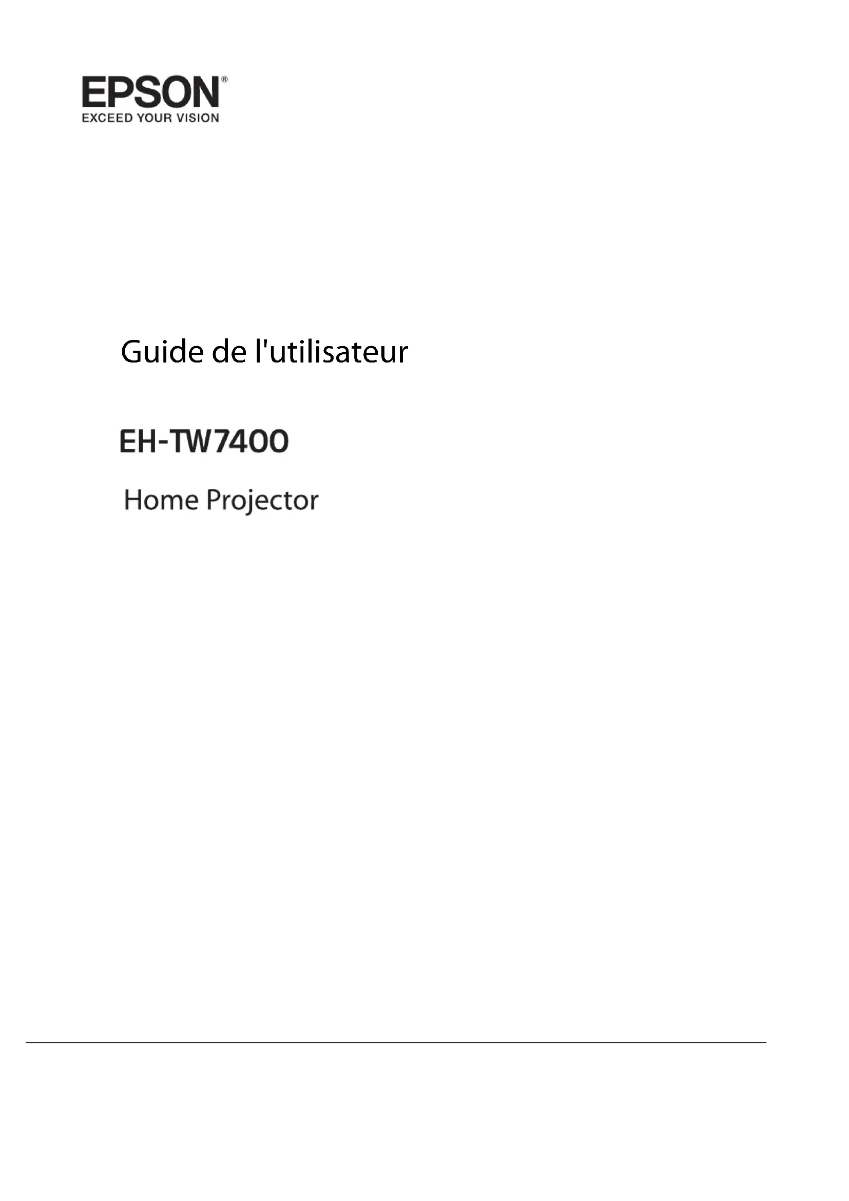 Téléchargez la notice de votre Projecteur au format PDF gratuitement ! Retrouvez votre notice EHTW7400 - EPSON et reprennez votre appareil électronique en main. Sur cette page sont publiés tous les documents nécessaires à l'utilisation de votre appareil EHTW7400 de la marque EPSON.
