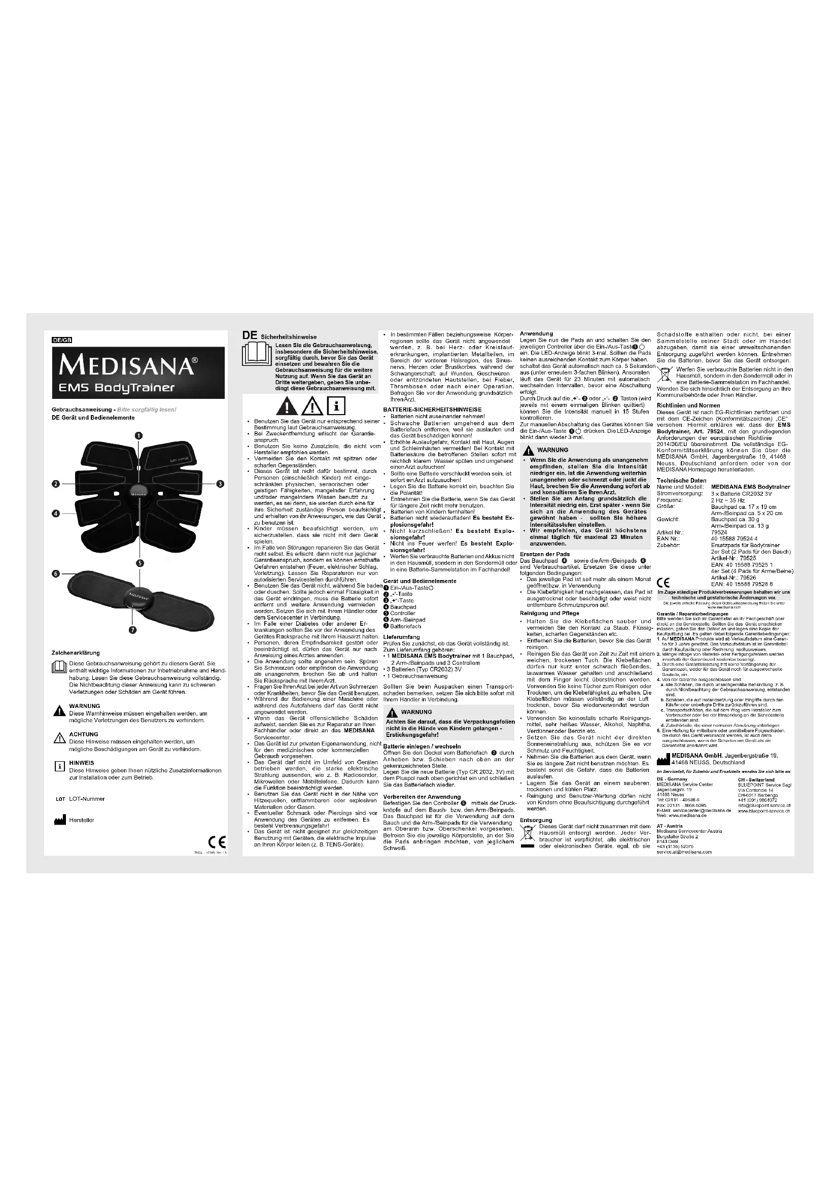 Retrouvez gratuitement la notice de l'appareil EMS Body Trainer 79524 MEDISANA au format PDF.