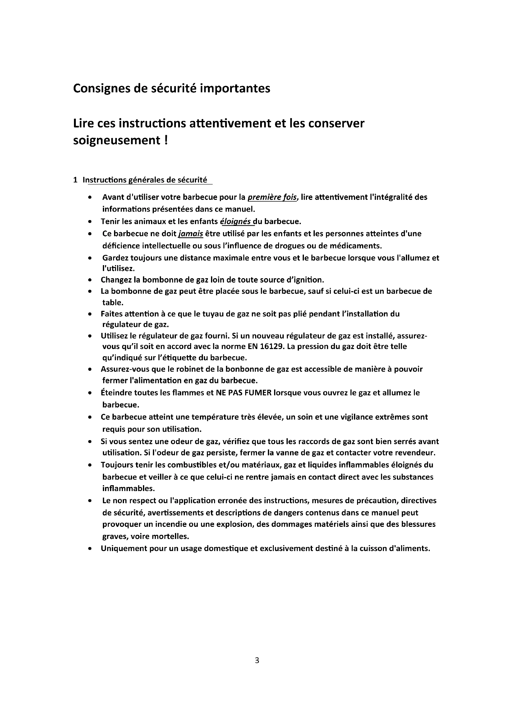 - Avant d'utiliser votre barbecue pour la première fois, lire attentivement l'intégralité des informations présentées dans ce manuel.