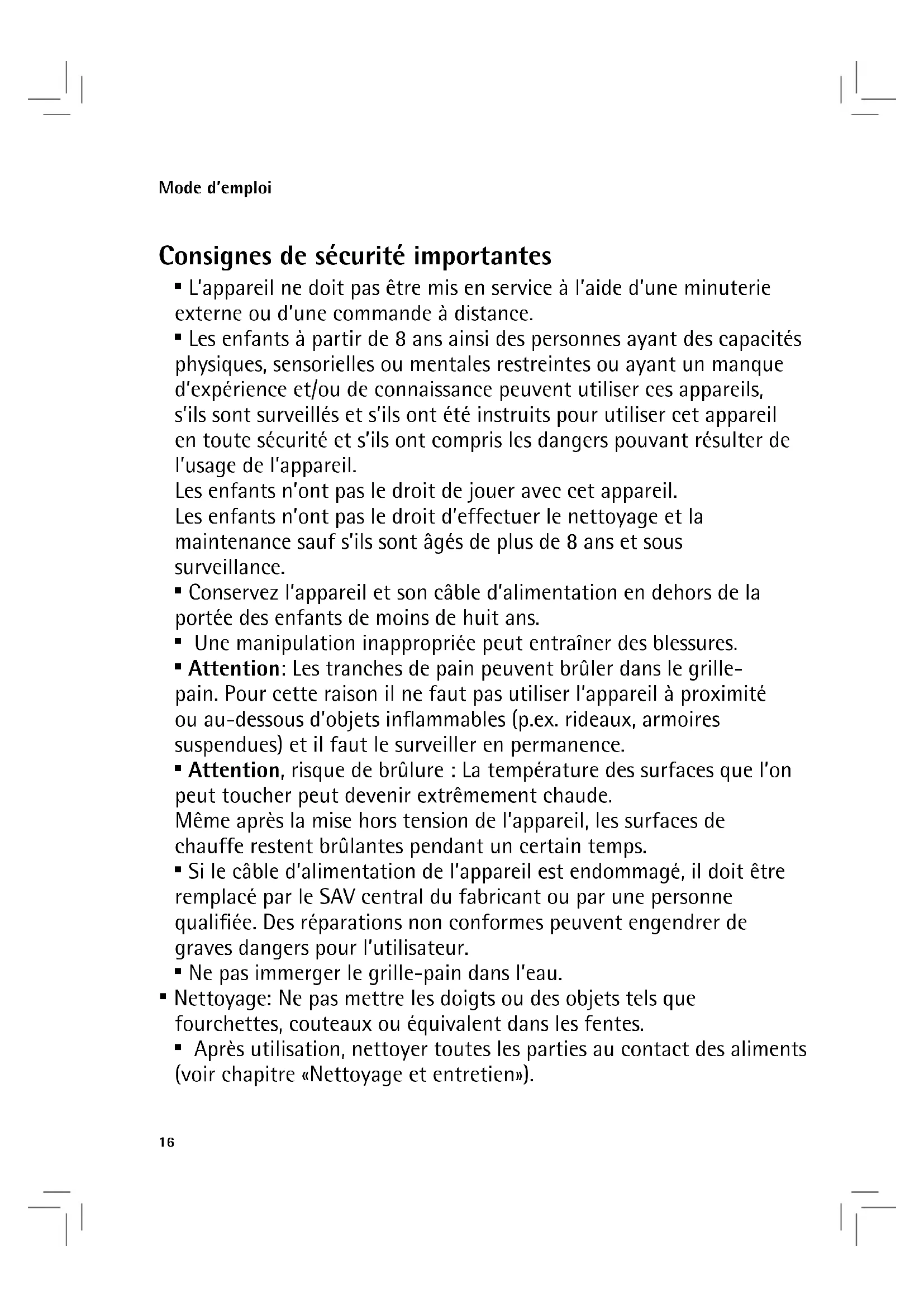 - Ne jamais faire fonctionner le grille-pain sans surveillance.