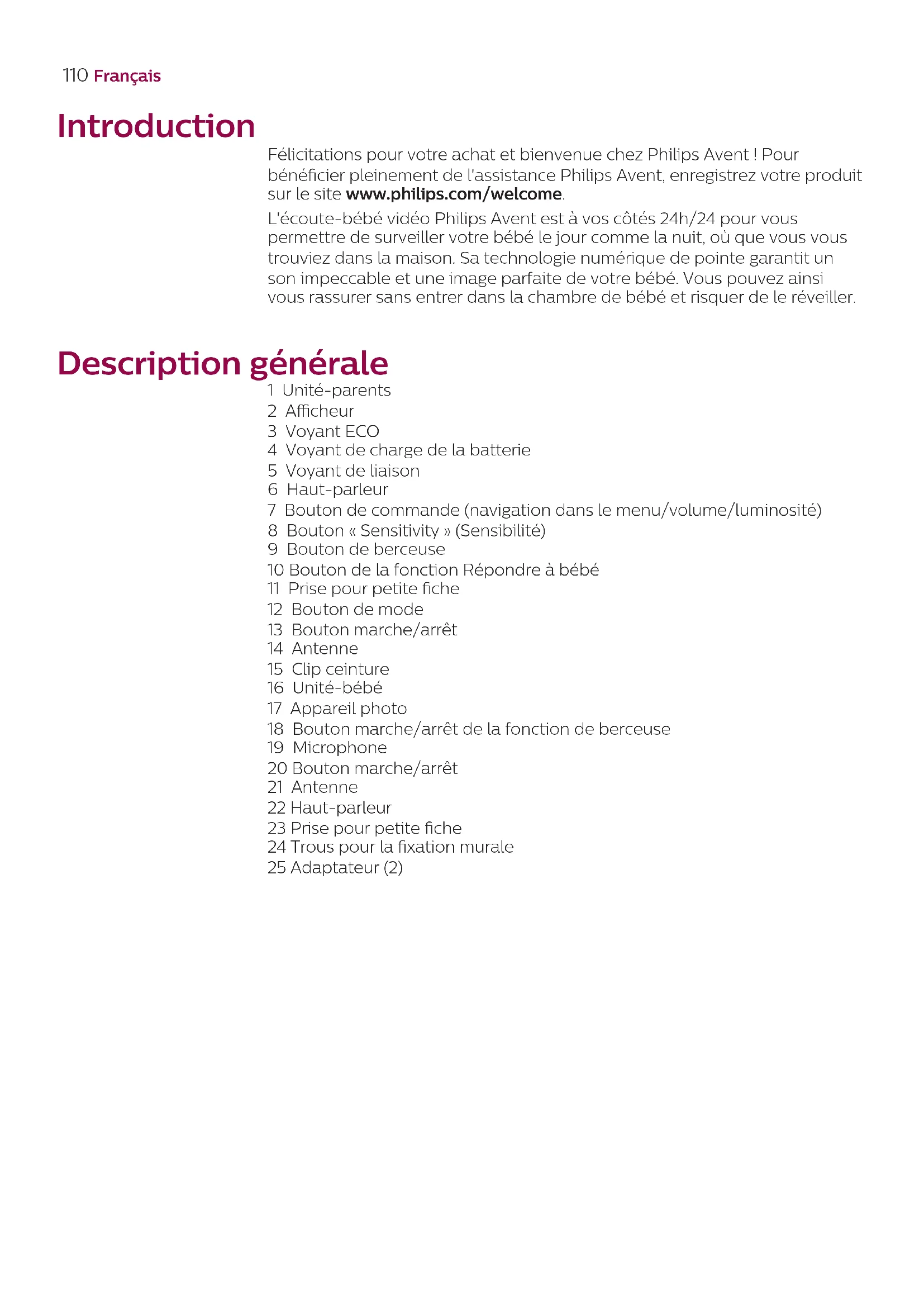 Félicitations pour votre achat et bienvenue chez Philips Avent! Pour bénéficier pleinement de l'assistance Philips Avent, enregistrez votre produit sur le site www.philips.com/welcome.
