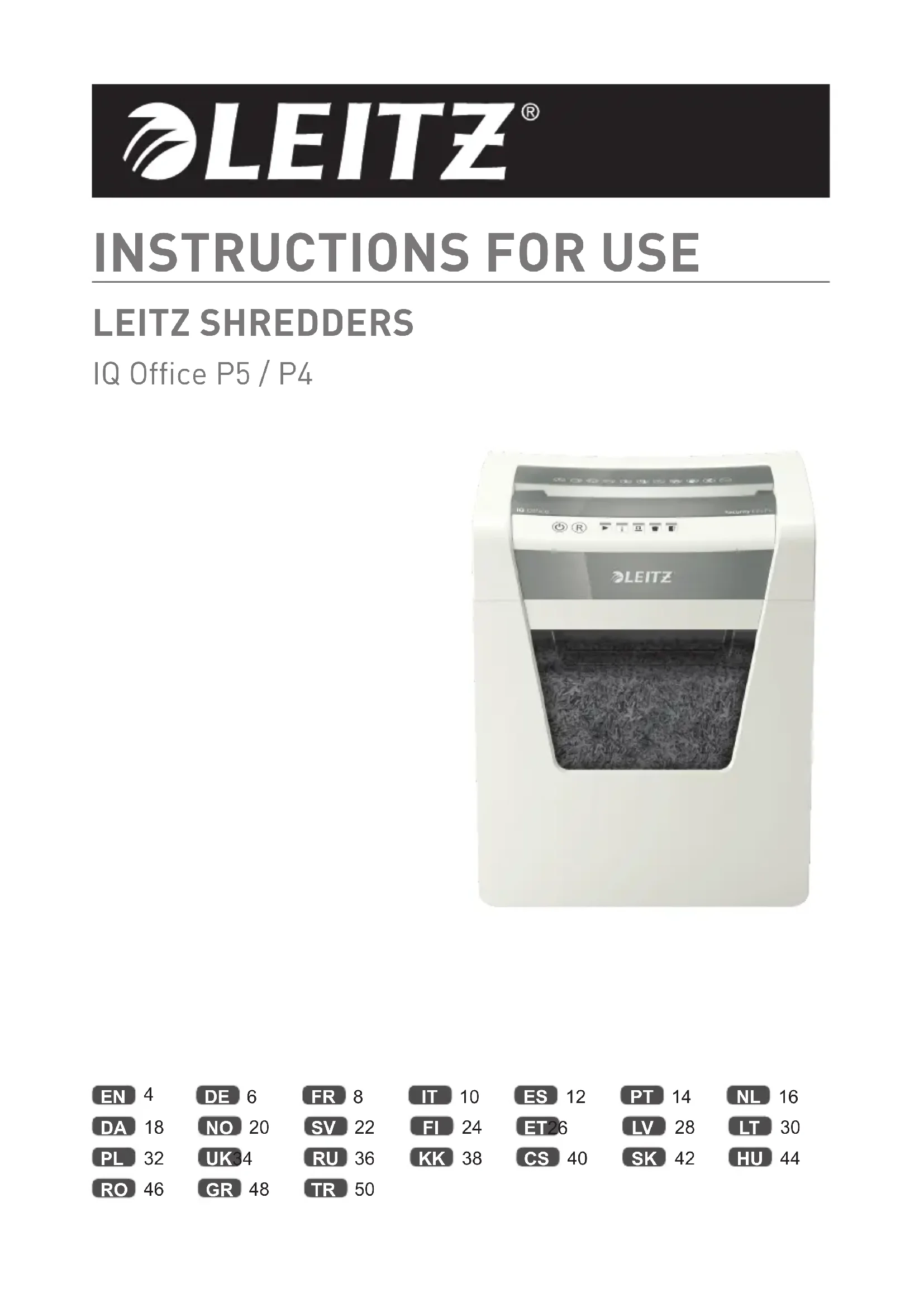 IQ Office P4 - Destructeur de document LEITZ - Notice d'utilisation et mode d'emploi gratuit