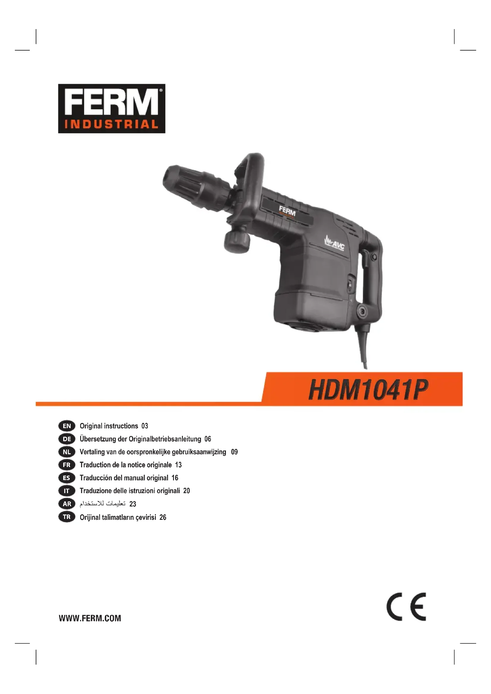HDM1041P Merci d’avoir choisi ce produit FERM. Vous avez fait le choix d’un produit de qualité, fourni par l’un des principaux fournisseurs européens. Tous les produits vendus par Ferm sont fabriqués conformément aux normes les plus strictes en matière de performances et de sécurité. Renforcée par notre garantie très complète, l’excellence de notre service clientèle forme également partie intégrante de notre philosophie. Nous espérons que vous profiterez longtemps de ce produit.