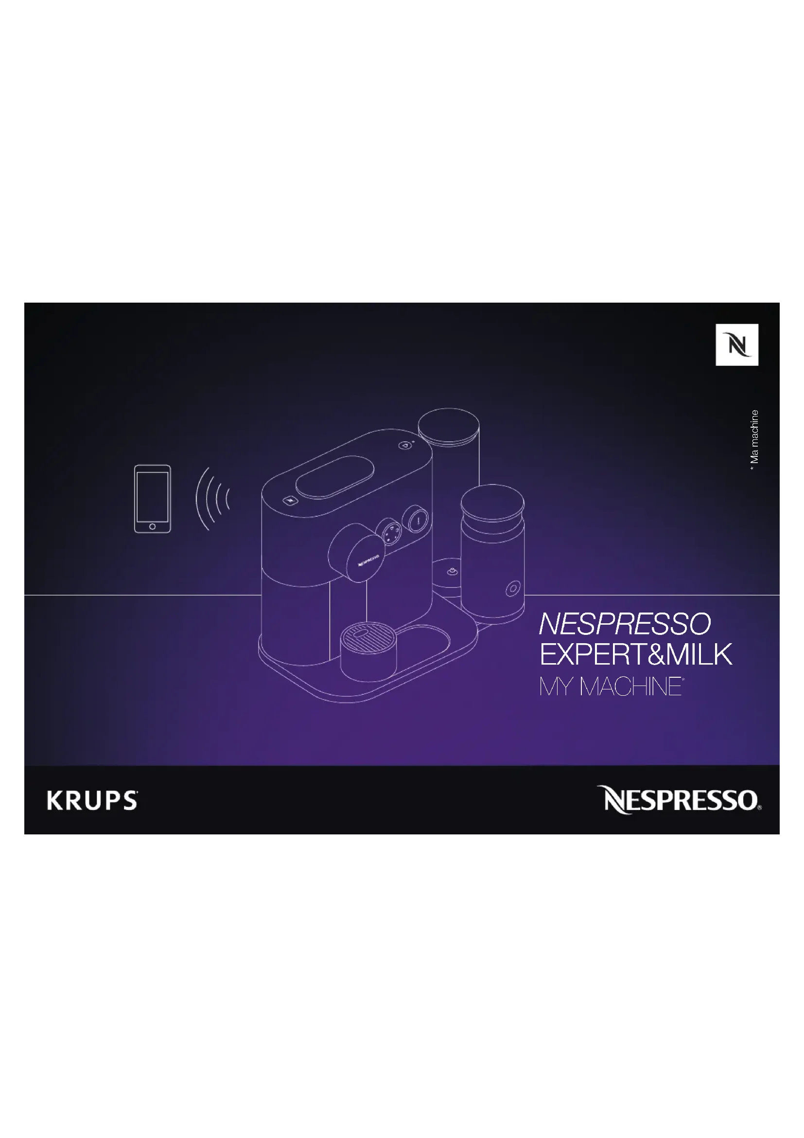 Get the App / Obtenir l’Application ❷ Launch the App. Lancez l’Application. ❸ Click on the Machine Icon. Cliquez sur l’icône Machine. Pairing / Jumelage Connectivity Functions / Fonctions de connectivité - Recipe Management- Capsules stock management- Schedule a coffee brewing- Brew Now- Maintenance notifications- Descaling alert- And more to see via the App- Gestion des recettes- Gestion du stock de capsules- Programmation d'un café à l'heure de votre choix- Préparation immédiate d'un café- Notifications d’entretien- Alerte de détartrage- Et bien d’autres fonctions à découvrir directement sur l’Application When the pairing is complete, the Nespresso Light will blink 3 times. Une fois le jumelage terminé, le voyant Nespresso sur la machine clignote 3 fois. Please remember that the Bluetooth mode must be activated beforehand on your smartphone or tablet. N’oubliez pas que vous devez au préalable activer le mode Bluetooth sur votre smartphone ou votre tablette. ❶ Download the Nespresso App. If you have it already, please update the App.Téléchargez l’Application Nespresso. Si vous l’avez déjà, il est recommandé de la mettre à jour.To check your device's compatibility, go on www.nespresso.comVérifiez la compatibilité de votre appareil sur www.nespresso.comUM_EXPERT&MILK_RC_KRUPS.indb 14 19.06.17 13:27EN