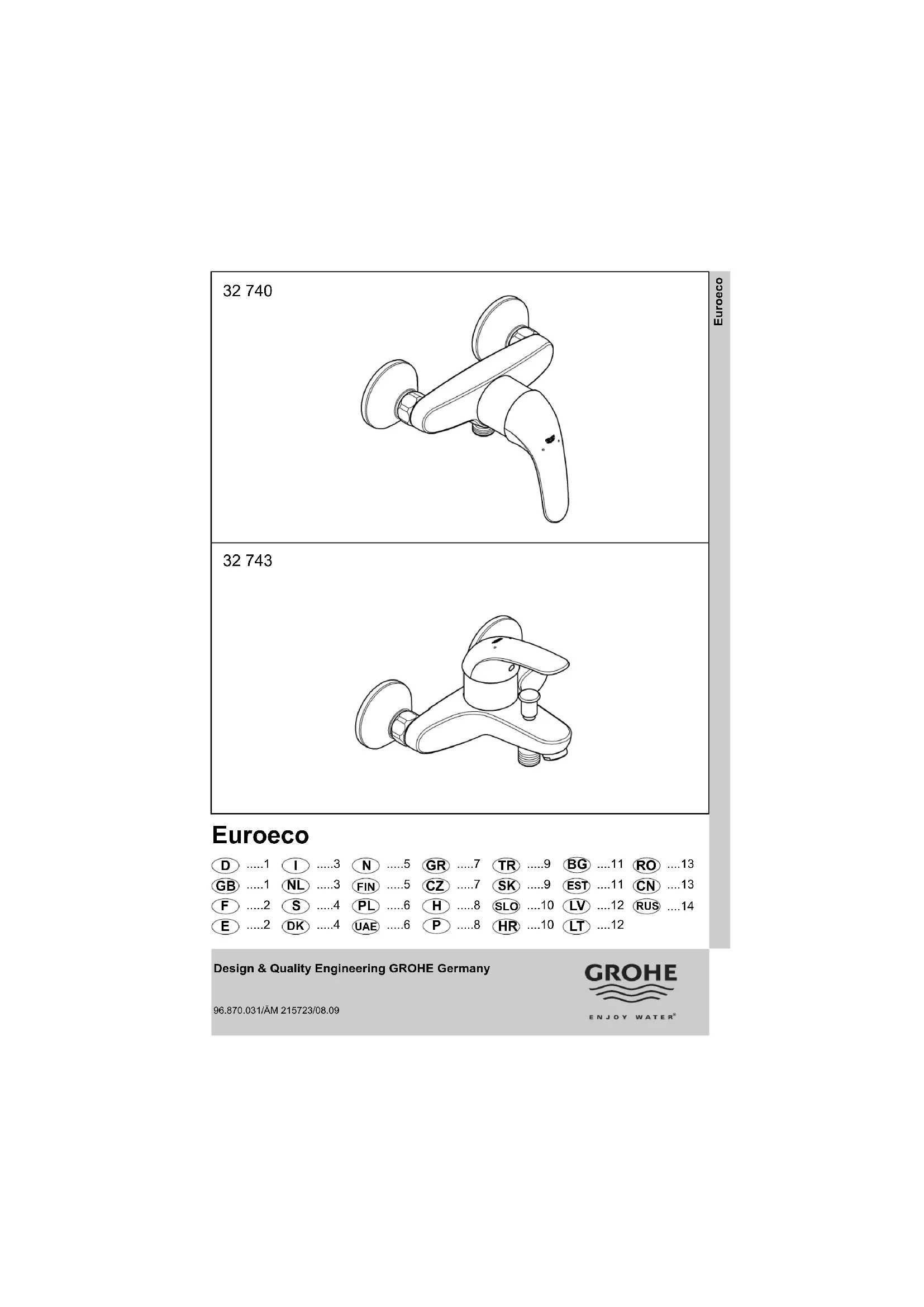 Retrouvez gratuitement la notice de l'appareil Euroeco 32743000 GROHE au format PDF.