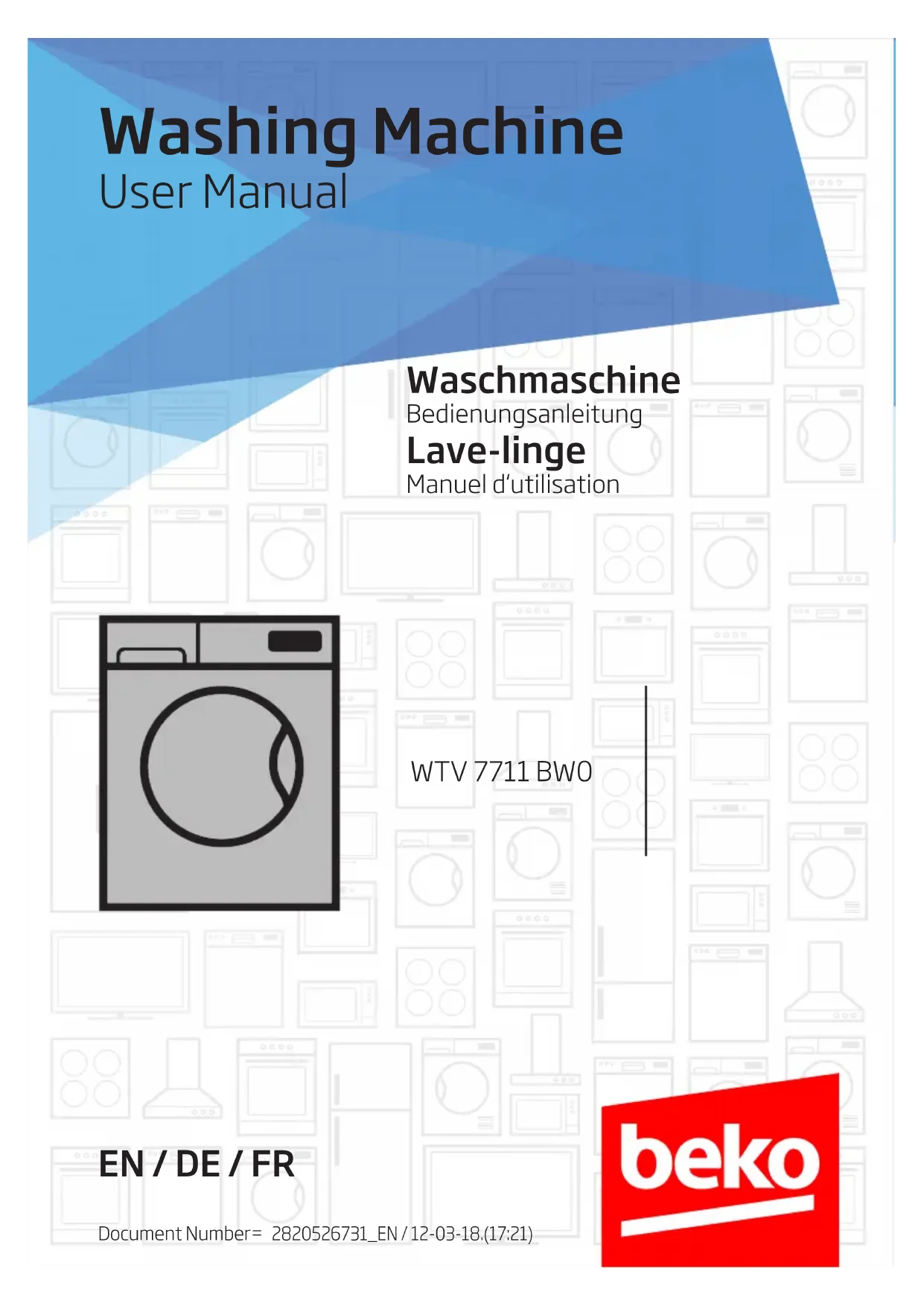 Retrouvez gratuitement la notice de l'appareil WTV7711BW0 BEKO au format PDF.