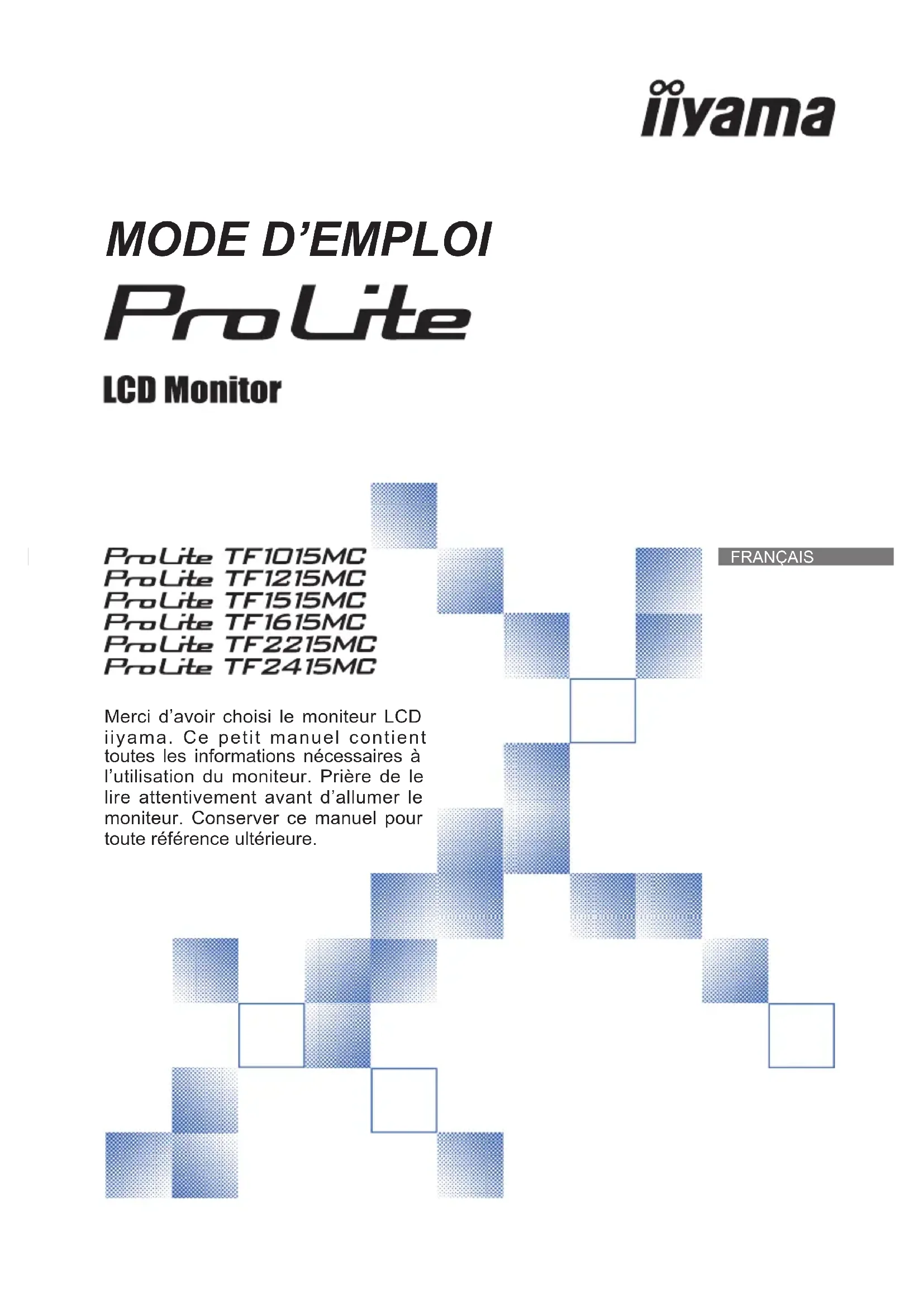 Merci d’avoir choisi le moniteur LCD iiyama. Ce petit manuel contient toutes les informations nécessaires à l’utilisation du moniteur. Prière de le lire attentivement avant d’allumer le moniteur. Conserver ce manuel pour toute référence ultérieure.FRANÇAIS