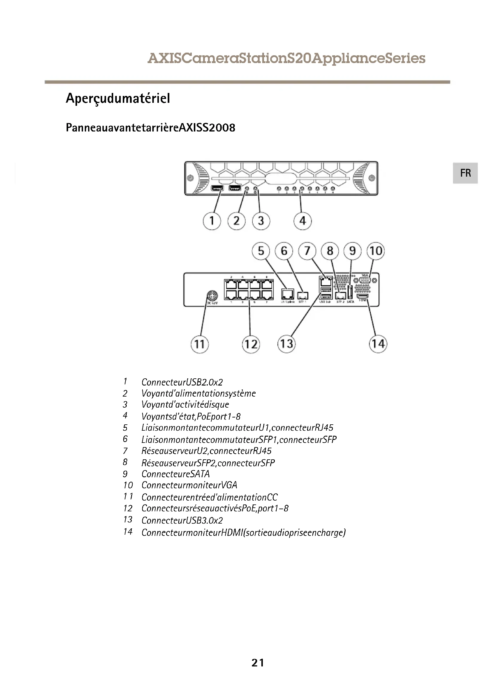 AXIS 1 2 3 4 4 5 6 7 8 9 10 11 12 13 13 14 151 ConnecteurUSB2.0x2