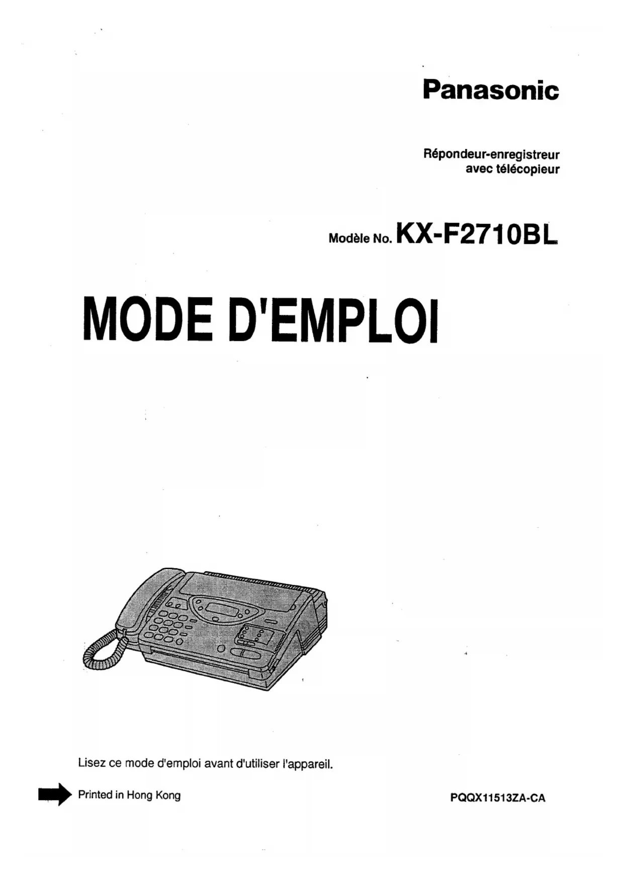 KXF2710 - Télécopieur PANASONIC - Notice d'utilisation et mode d'emploi gratuit