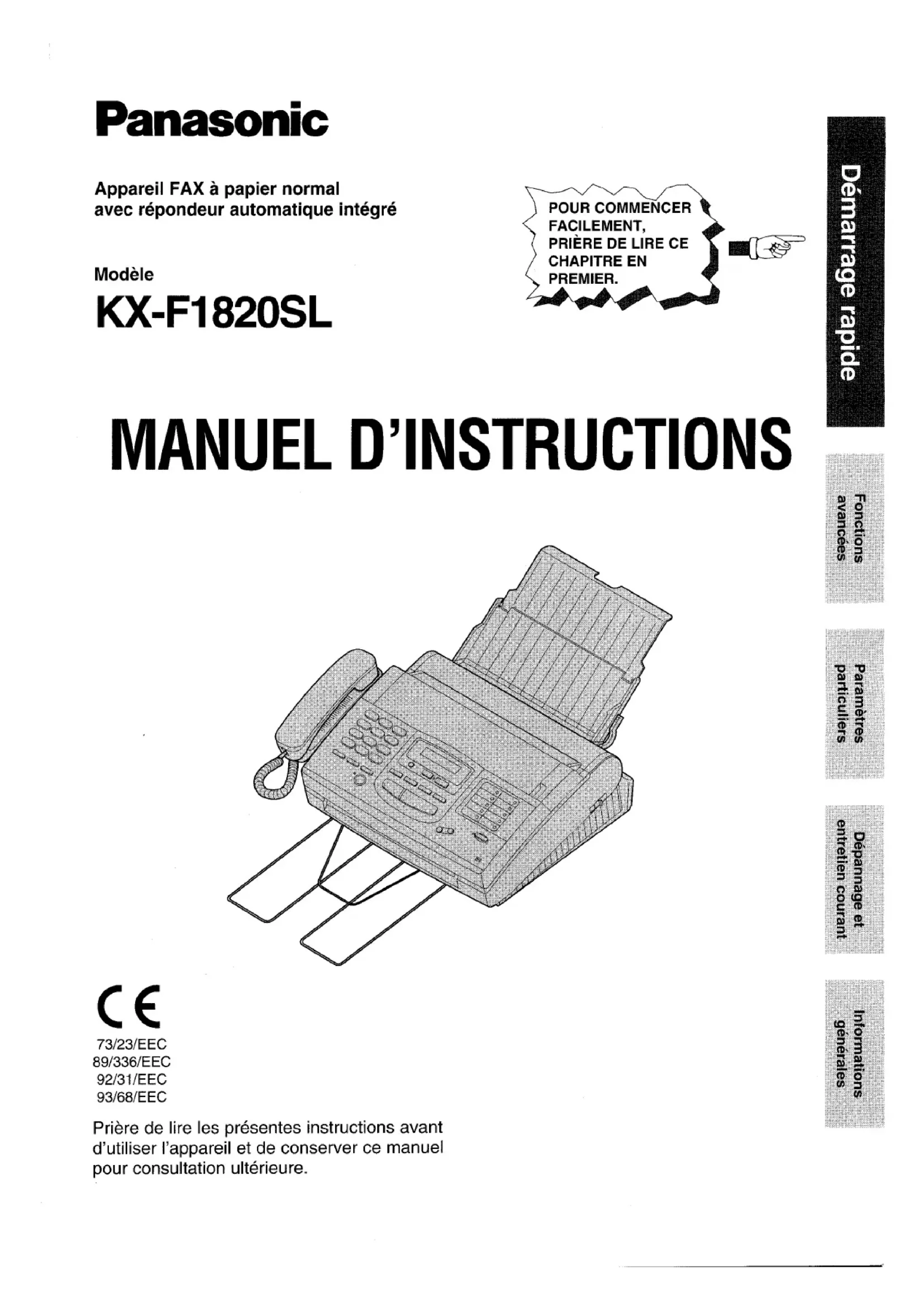 KXF1820 - Télécopieur PANASONIC - Notice d'utilisation et mode d'emploi gratuit