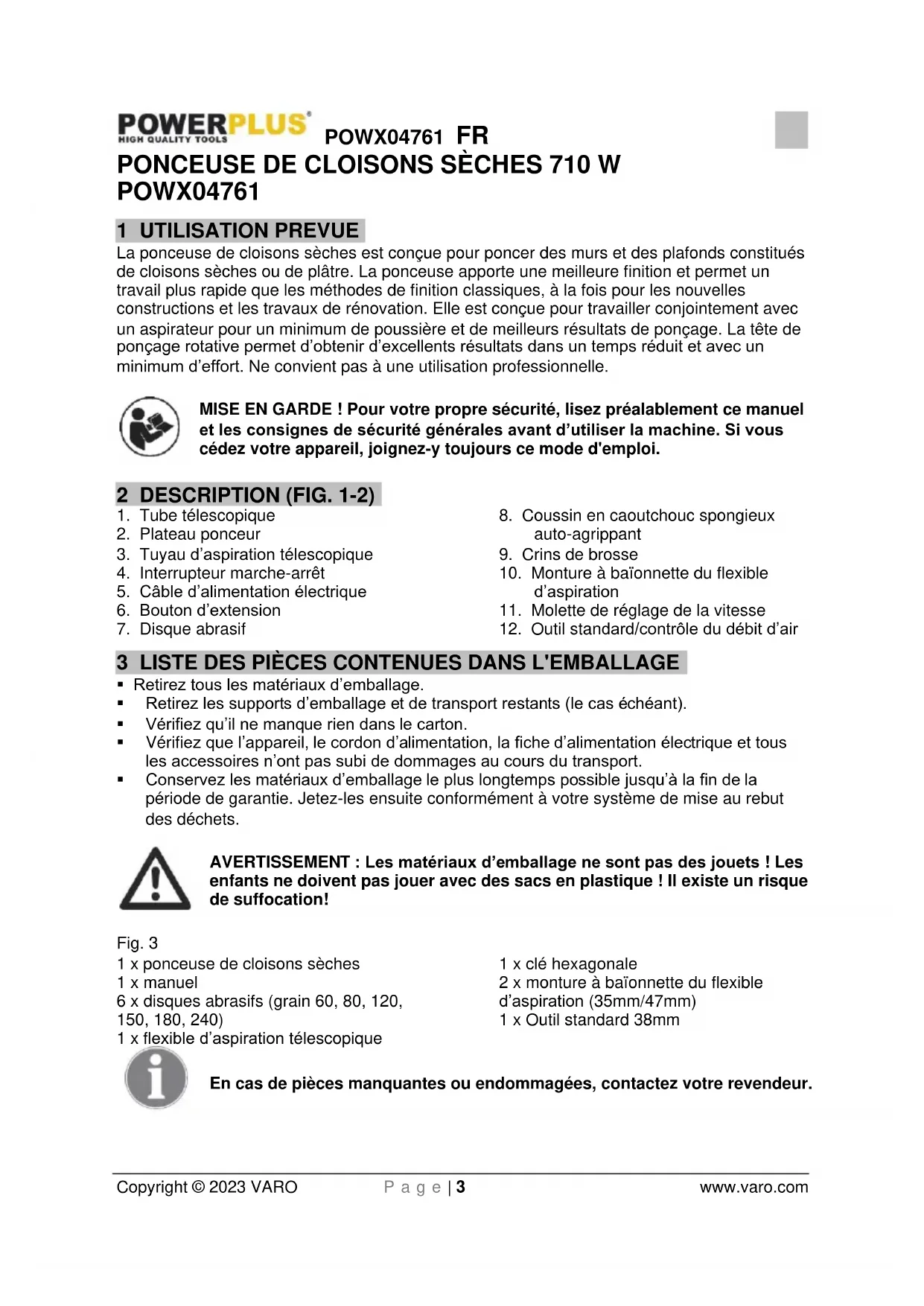 POWX04761 - Ponceuse PowerPlus - Notice d'utilisation et mode d'emploi gratuit