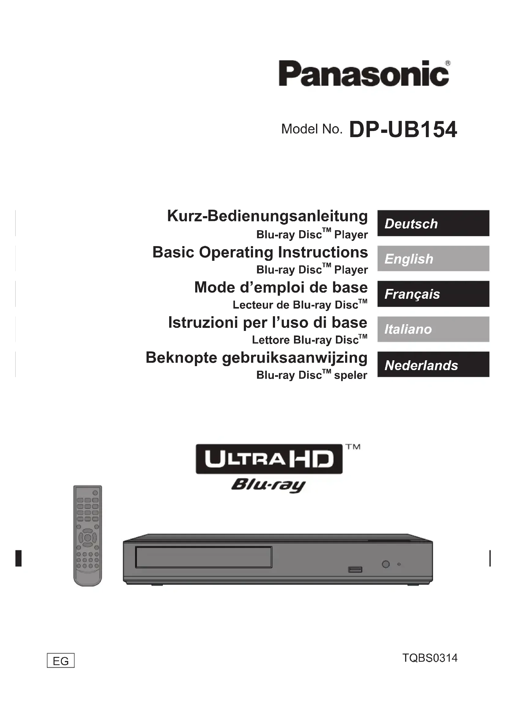 DPUB154 - Lecteur blu-ray PANASONIC - Notice d'utilisation et mode d'emploi gratuit
