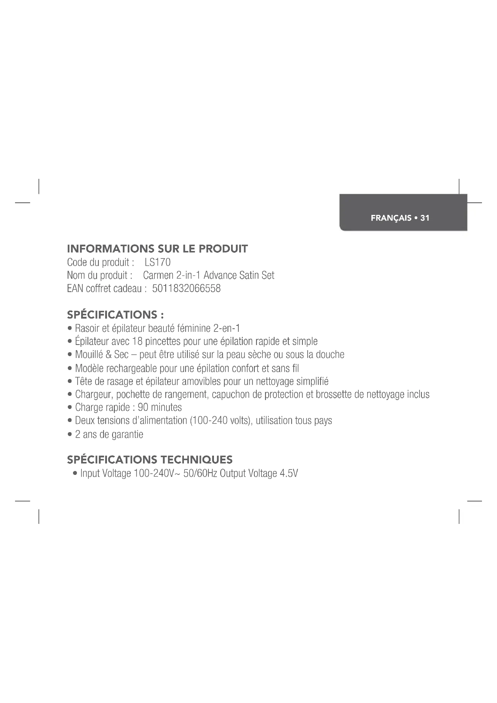 LS170 - Rasoir Carmen - Notice d'utilisation et mode d'emploi gratuit