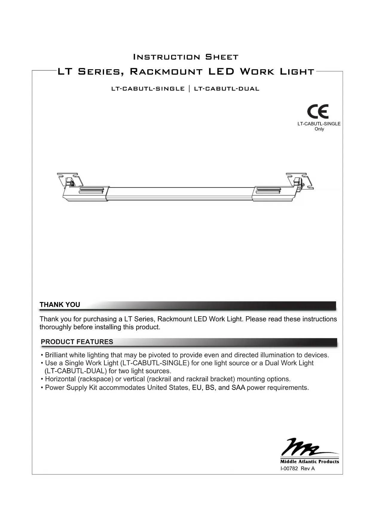 LTCABUTLSINGLE - Éclairage Middle Atlantic - Notice d'utilisation et mode d'emploi gratuit