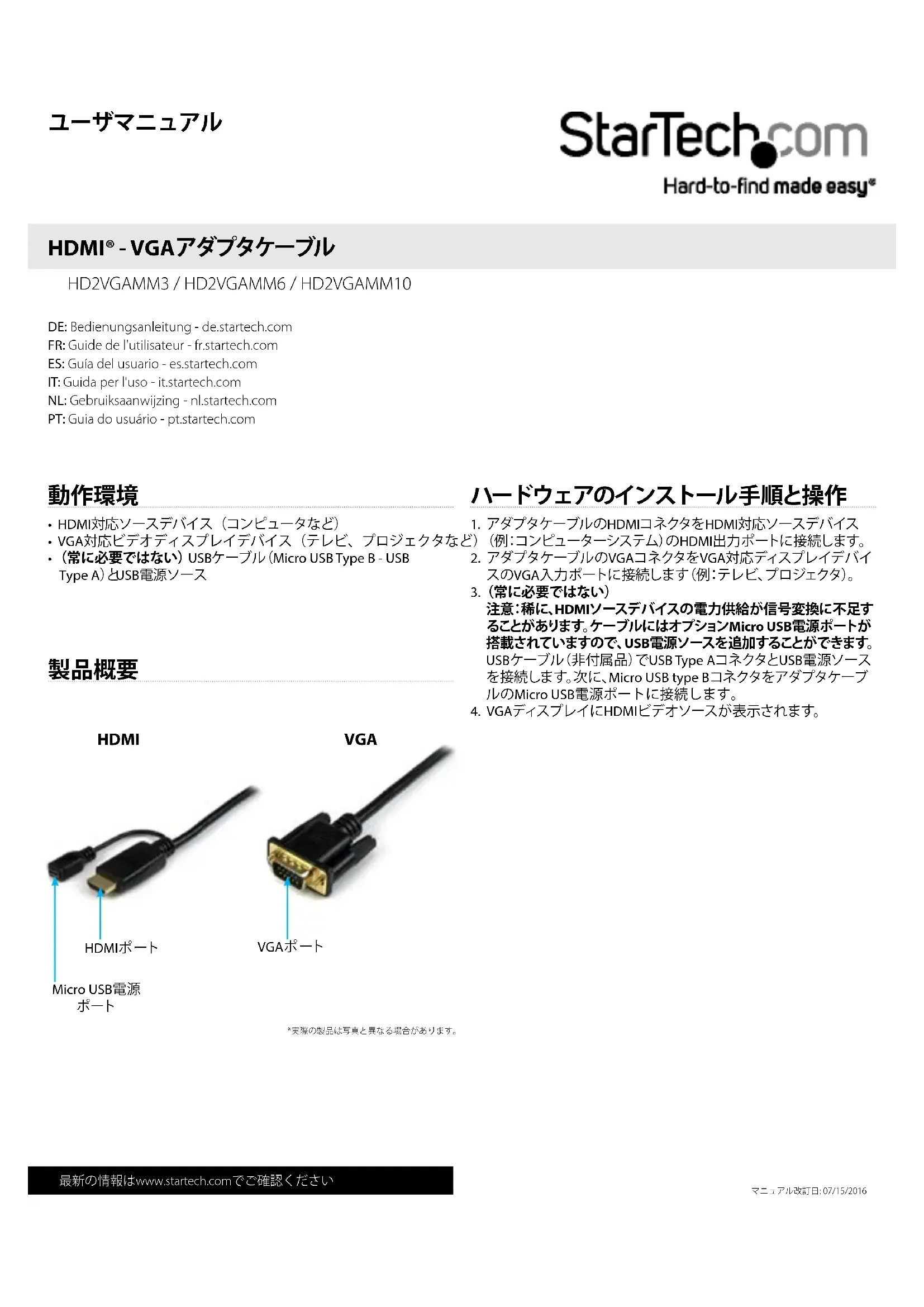 HD2VGAMM6 - Câble pour ordinateur et périphérique StarTech.com - Notice d'utilisation et mode d'emploi gratuit