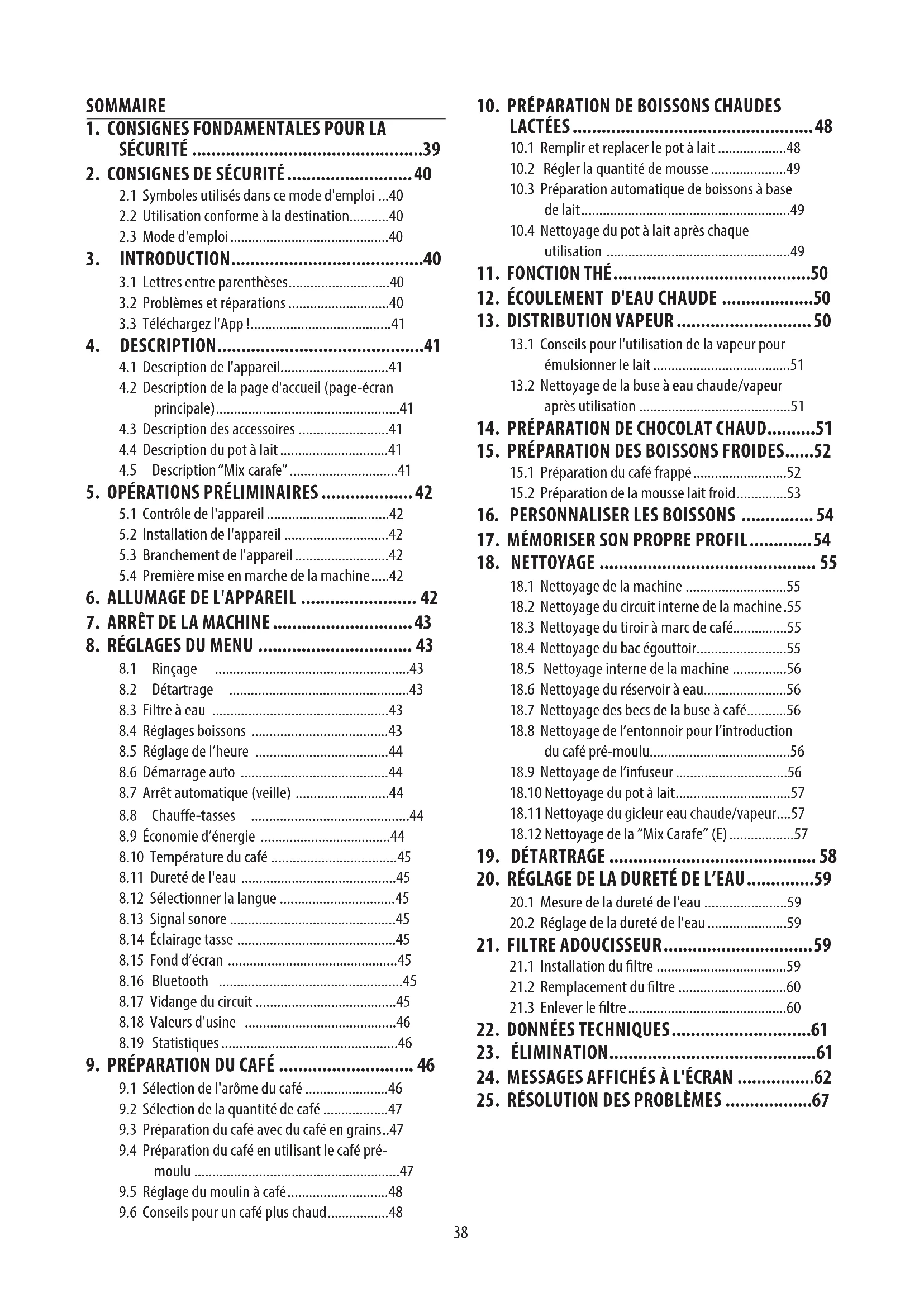 18.9 Nettoyage de l’infuseur ...............................56
