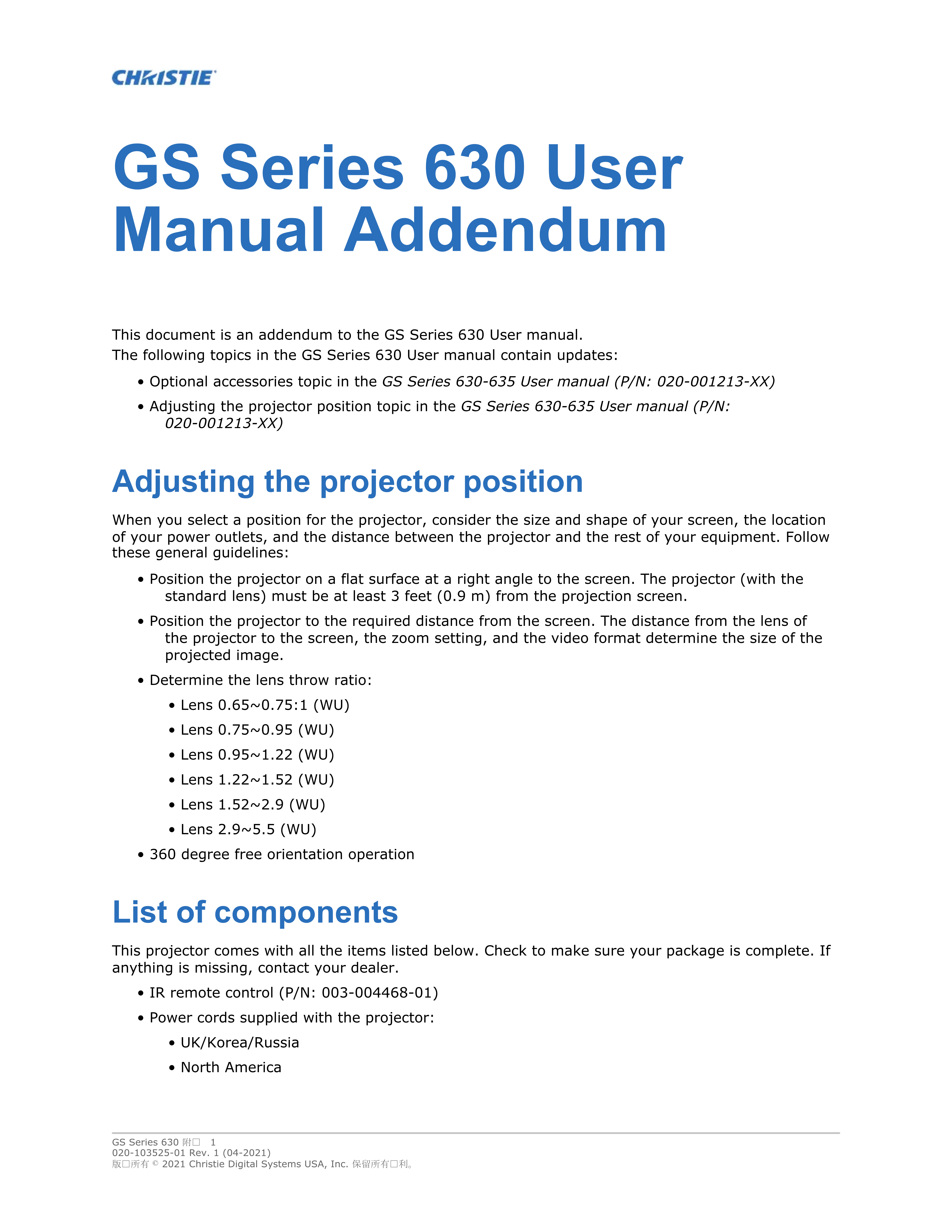 DWU630GS - Projecteur Christie - Notice d'utilisation et mode d'emploi gratuit