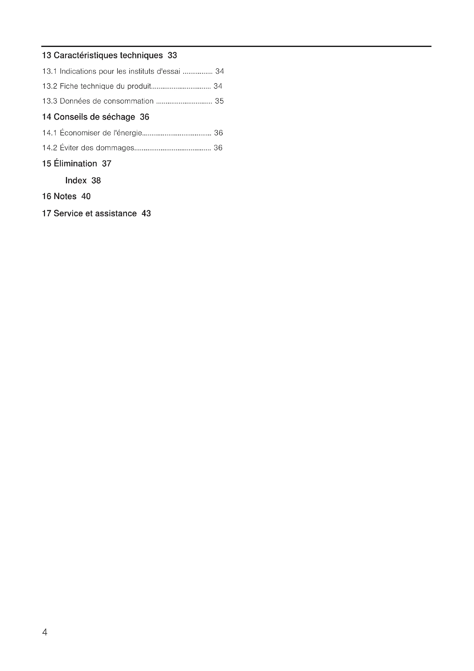 15 Élimination 37 Index 38 16 Notes 40 17 Service et assistance 435 1 Consignes de sécurité