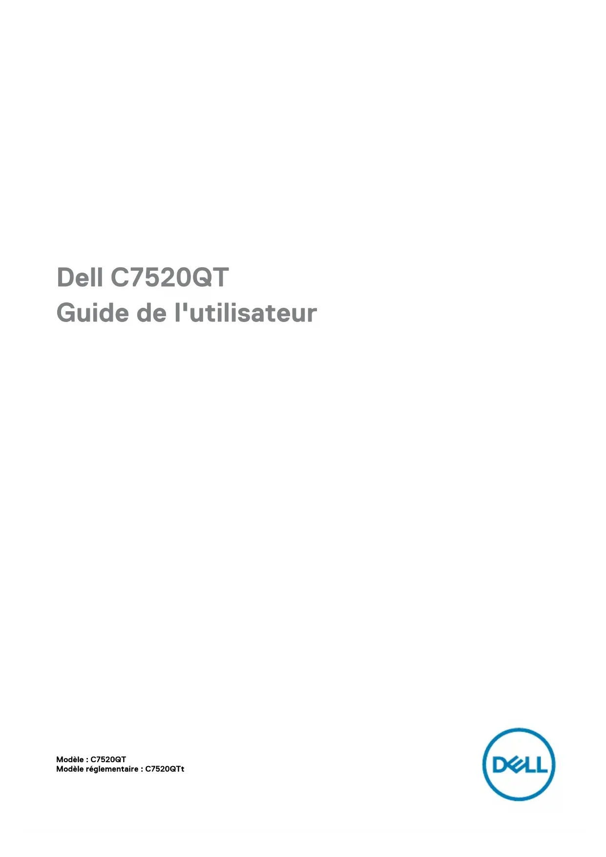 Téléchargez la notice de votre Moniteur au format PDF gratuitement ! Retrouvez votre notice C7520QT - DELL et reprennez votre appareil électronique en main. Sur cette page sont publiés tous les documents nécessaires à l'utilisation de votre appareil C7520QT de la marque DELL.