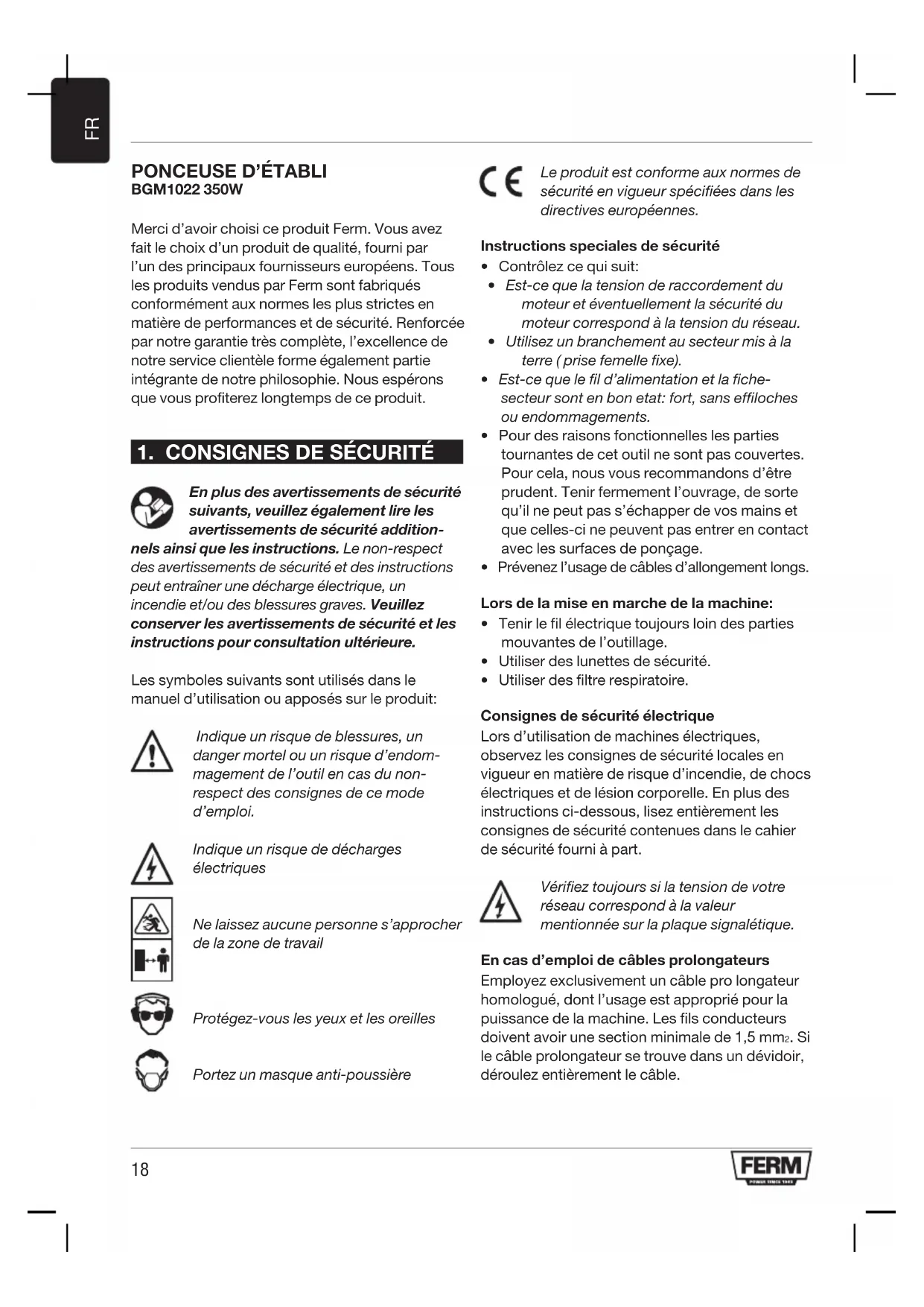 MODE D'EMPLOI BGM1022 Ferm