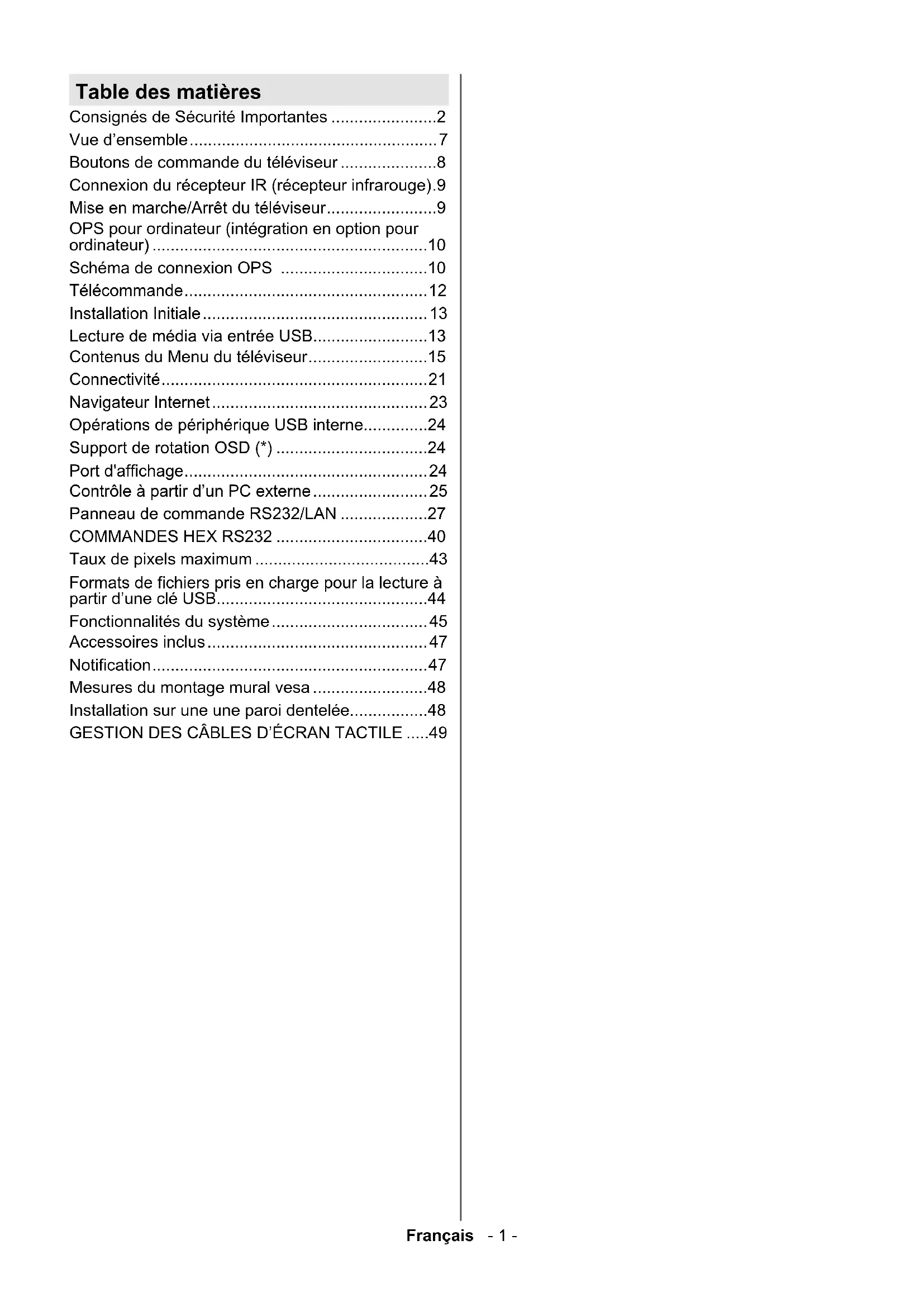- GESTION DES CÂBLES D’ÉCRAN TACTILE Français - 2 - p. 49
