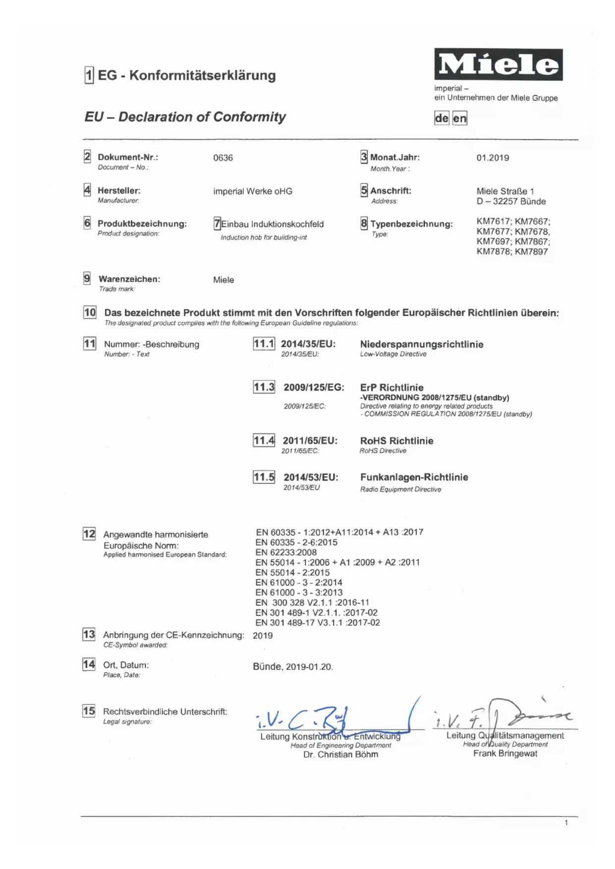 Retrouvez gratuitement la notice de l'appareil KM 7878 FL MIELE au format PDF.