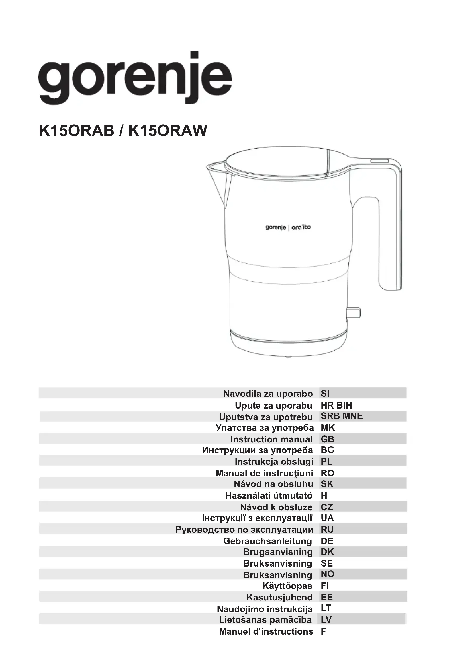 K15ORAB - Bouilloire GORENJE - Notice d'utilisation et mode d'emploi gratuit