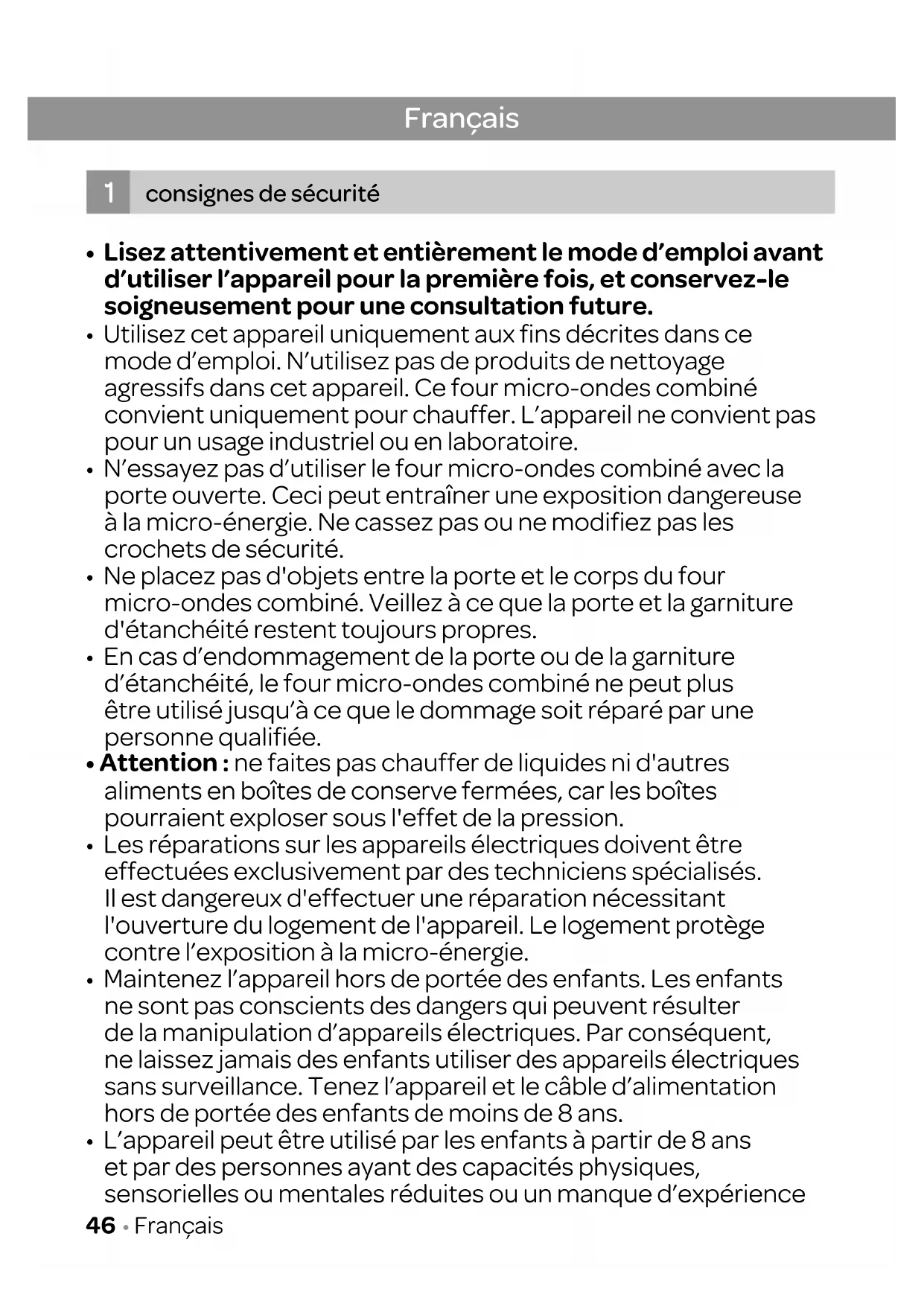 - Attention: ne faites pas chauffer de liquides ni d'autres alimentes en boîtes de conserve fermées, car les boîtes pourraient exploser sous l'effet de la pression.