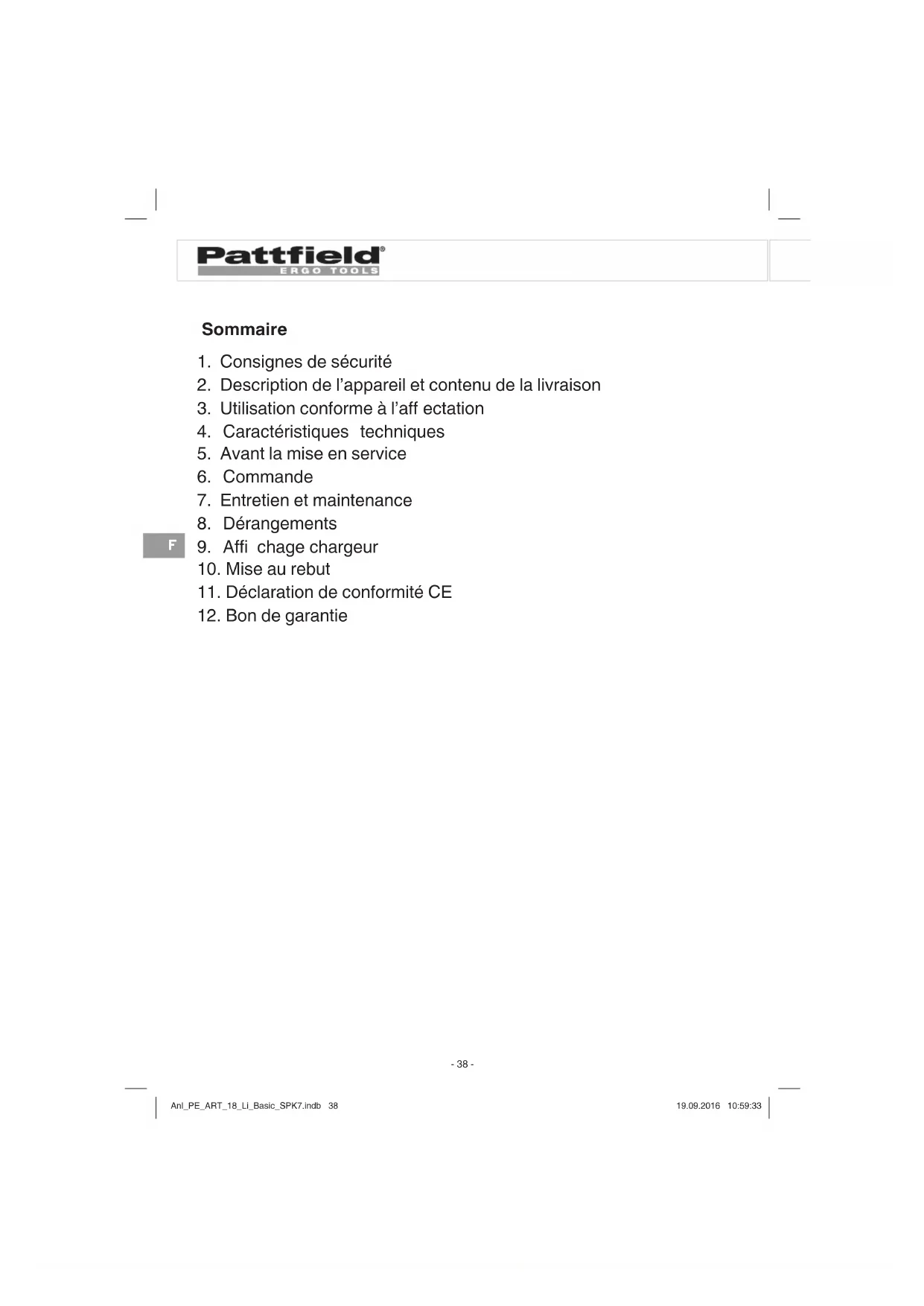 MODE D'EMPLOI PEART 18 Li Basic Pattfield