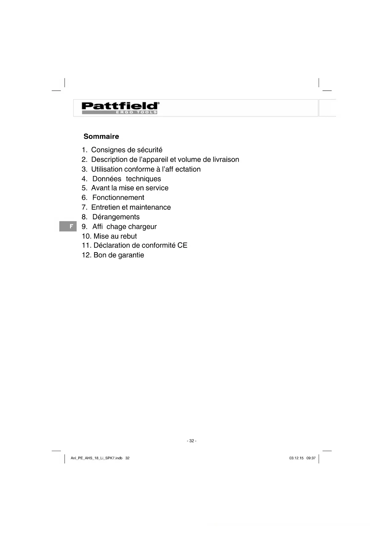 MODE D'EMPLOI PEAHS 18 Li Pattfield