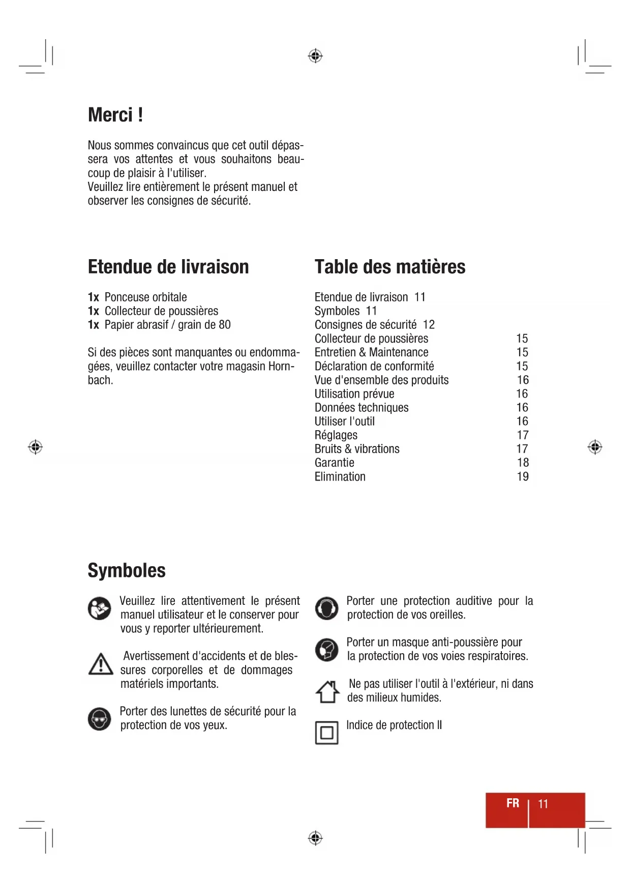 L'outil est destiné au ponçage du bois, du plastique, du métal ainsi que des surfaces revêues. Il n'est pas approprié pour le plâtre ou le mastic de construction à sec. L'outil n'est pas destiné à un usage commercial.