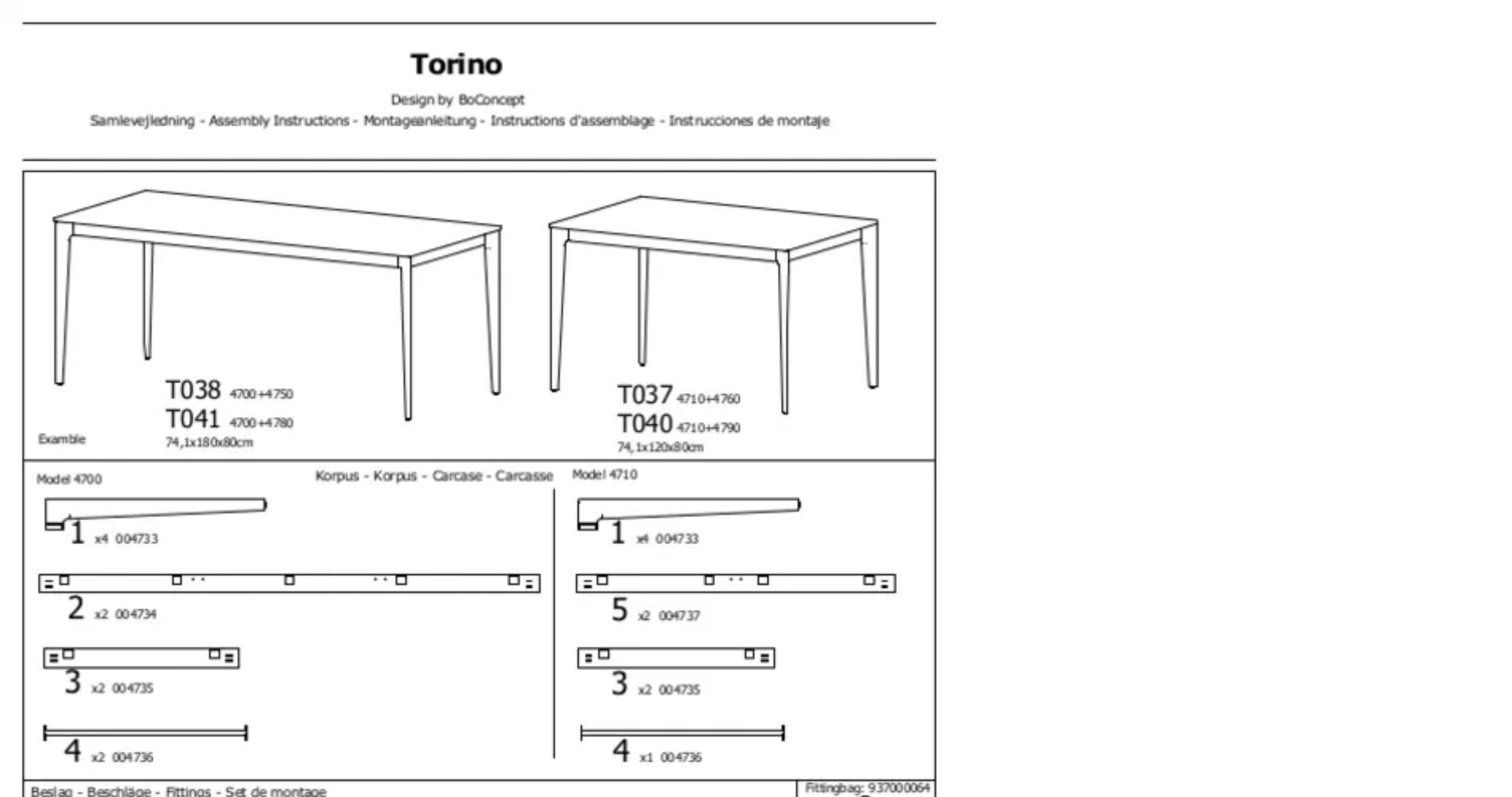 Pour assembler votre table BoConcept Torino, commencez par déballer toutes les pièces et vérifier qu'il n'en manque aucune. Suivez ensuite le manuel d'instructions fourni, en utilisant les outils recommandés. Assurez-vous que toutes les vis sont bien serrées pour garantir la stabilité de la table.