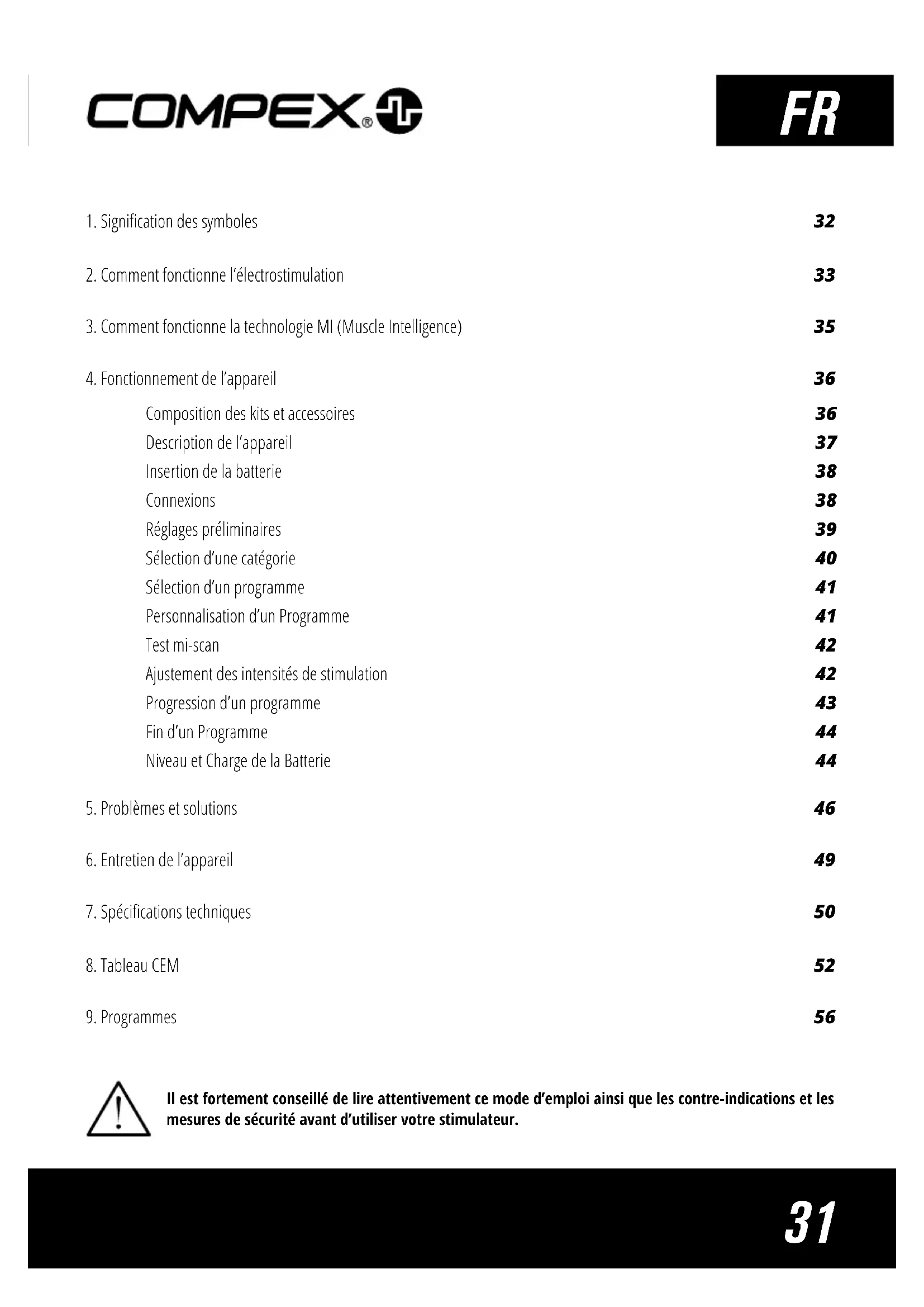 Il est fortement conseillé de lire attentivement ce mode d’emploi ainsi que les contre-indications et les mesures de sécurité avant d’utiliser votre stimulateur.