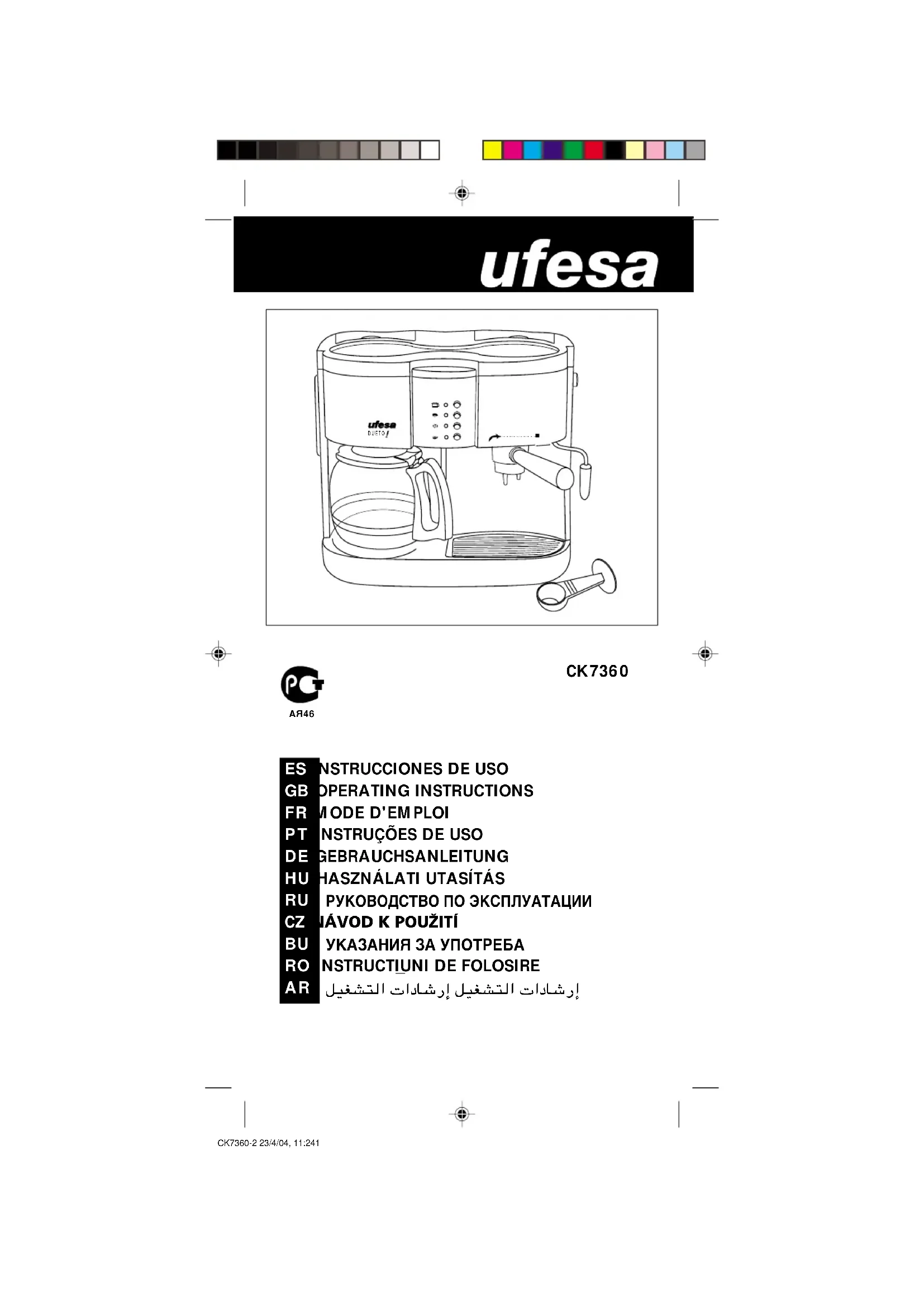 Retrouvez gratuitement la notice de l'appareil Dueto Espresso CK7360 UFESA au format PDF.