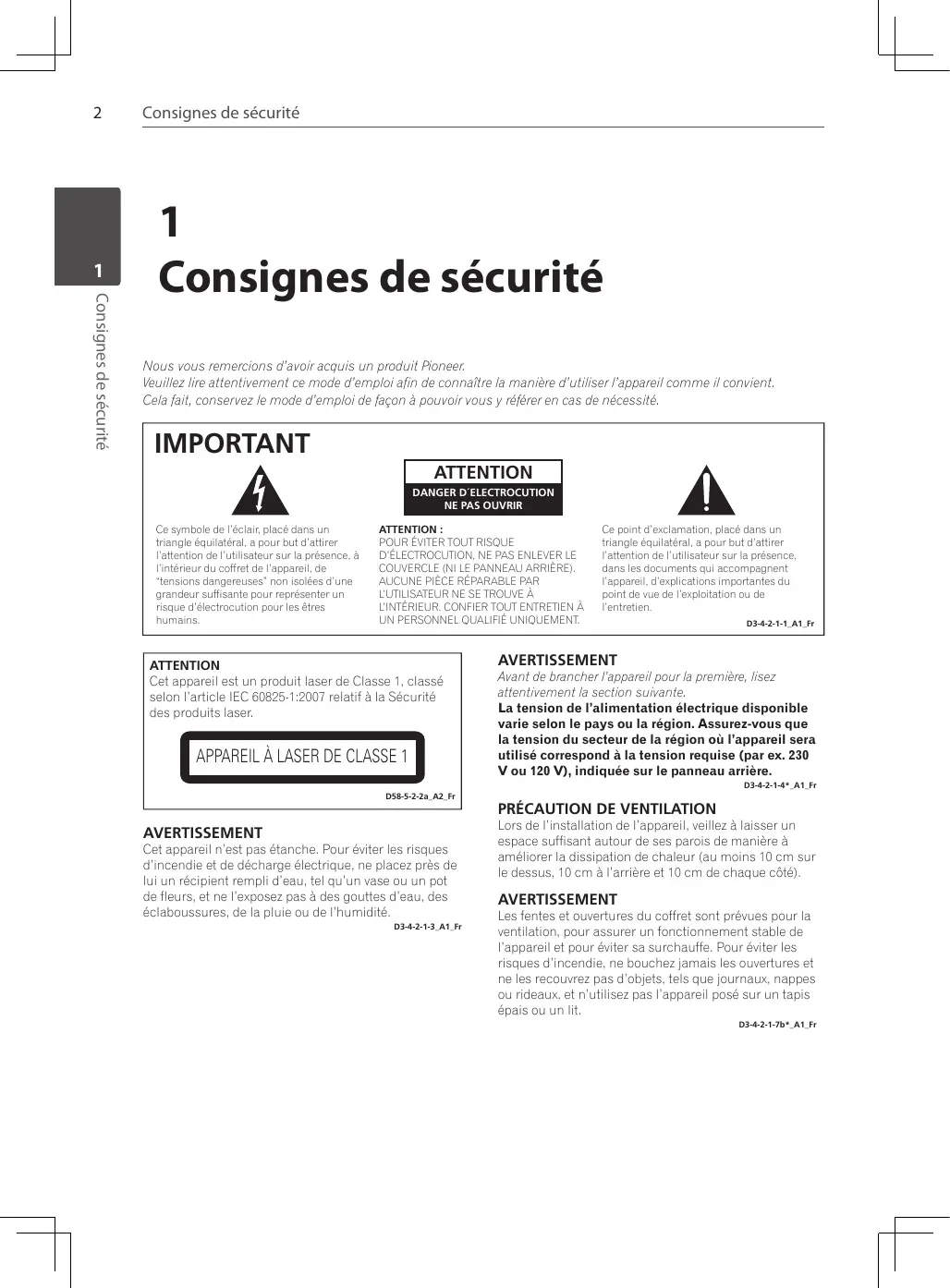 Consignes de sécurité Nous vous remercions d’avoir acquis un produit Pioneer. Veuillez lire attentivement ce mode d’emploi afin de connaître la manière d’utiliser l’appareil comme il convient. Cela fait, conservez le mode d’emploi de façon à pouvoir vous y référer en cas de nécessité.