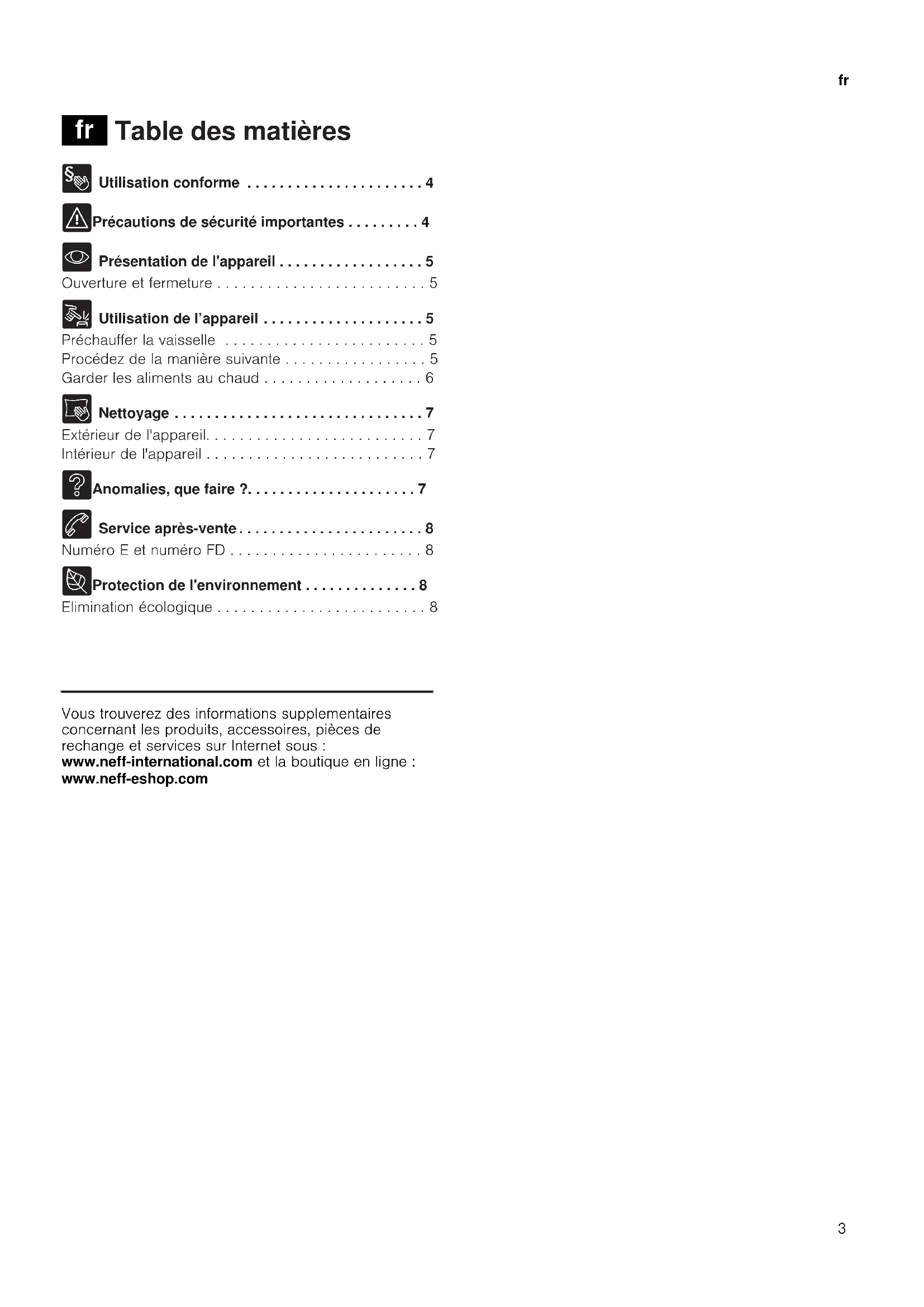 Vous trouvez des informations supplémentaires concernant les produits, accessoires, pièces de rechange et services sur Internet sous : www.neff-international.com et la boutique en ligne : www.neff-eshop.com