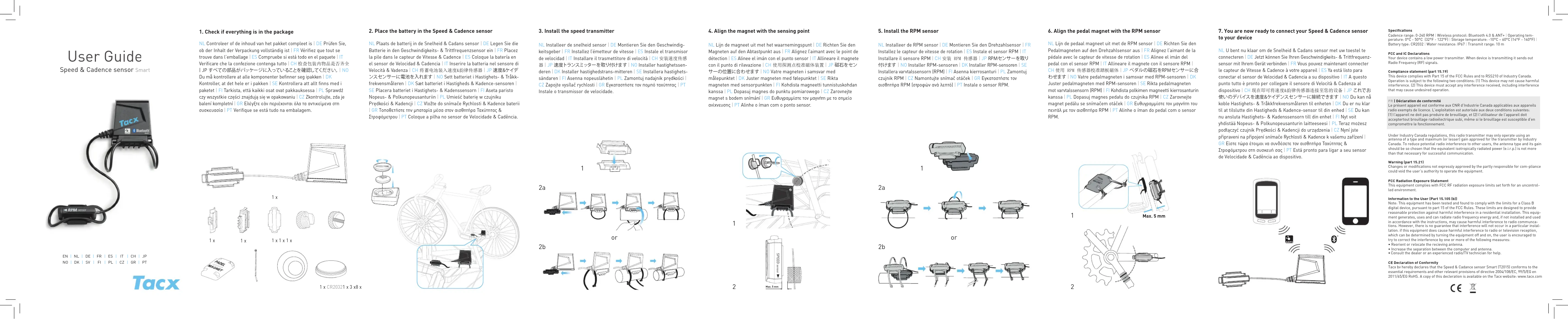 Retrouvez gratuitement la notice de l'appareil Speed & Cadence sensor Smart Tacx au format PDF.