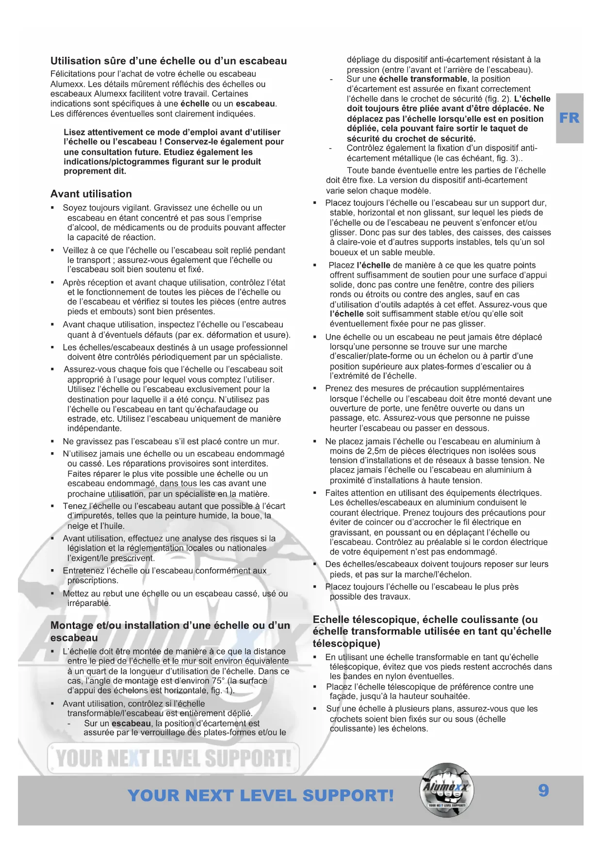 Félicitations pour l'achat de votre échelle ou escabeau Alumexx. Les détails mûrement refléchis des échelles ou escabeaux Alumexx facilitent leur travail. Certaines indications sont spécifiques à une échelle ou un escabeau. Les différences eventuelles sont clairment indiquées.