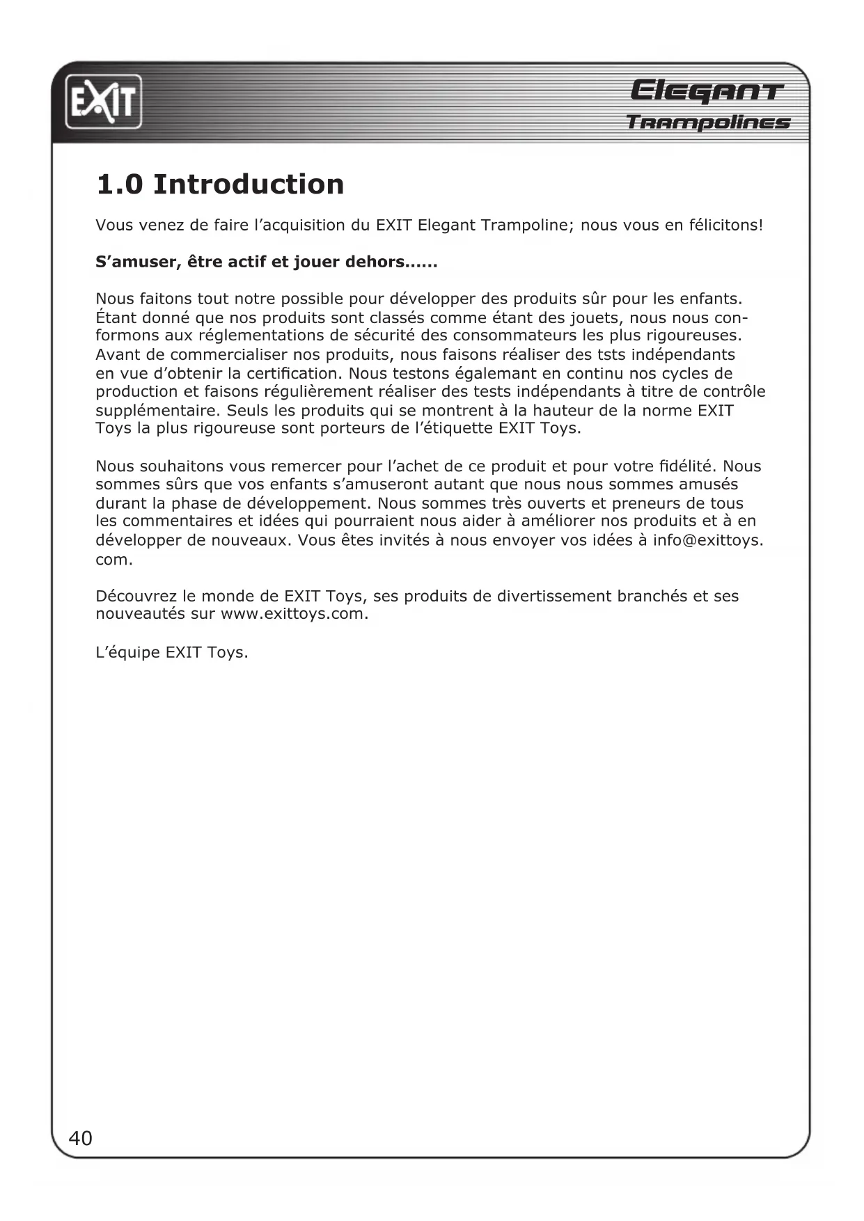 Voues venez de faire I'acquisition du EXIT Elegant Trampoline; nous you en felicitons!