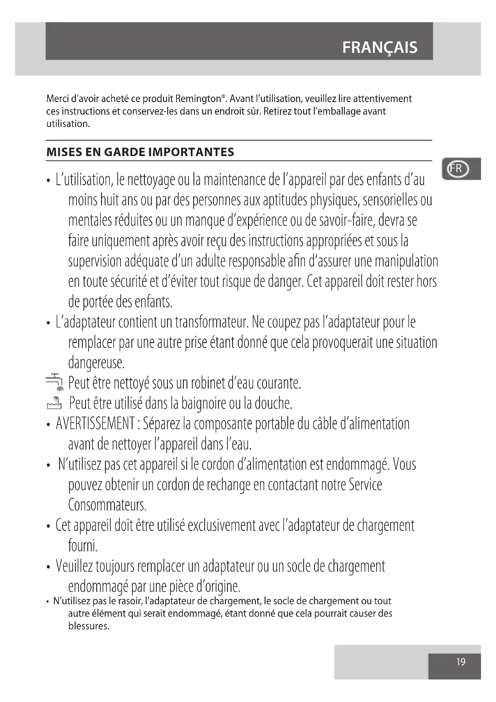 MODE D'EMPLOI Ultimate Series R9 XR1570 REMINGTON