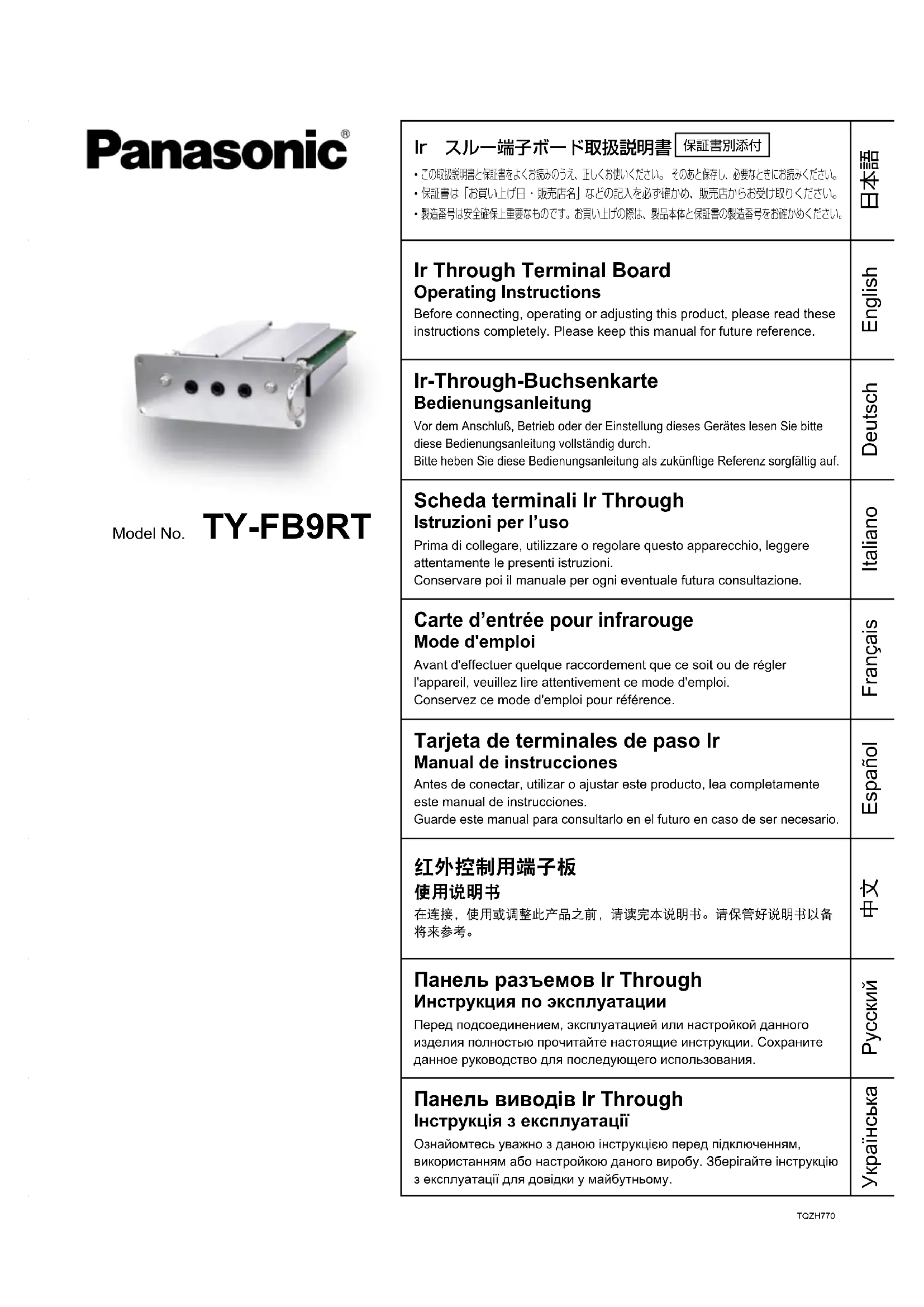 Retrouvez gratuitement la notice de l'appareil TYFB9RT PANASONIC au format PDF.